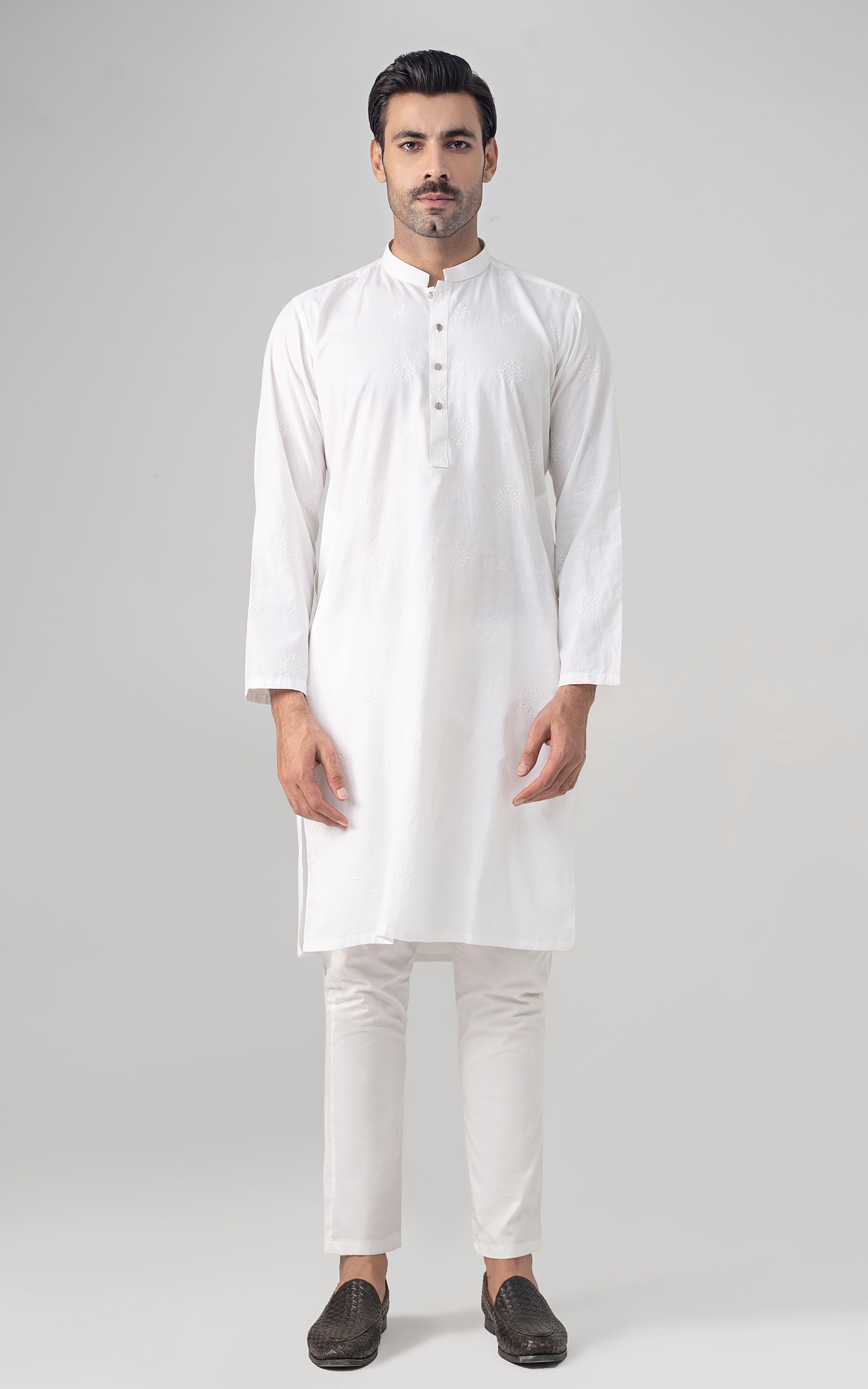 SPRAY EMBROIDERED KURTA- SIGNATURE COLLECTION WHITE
