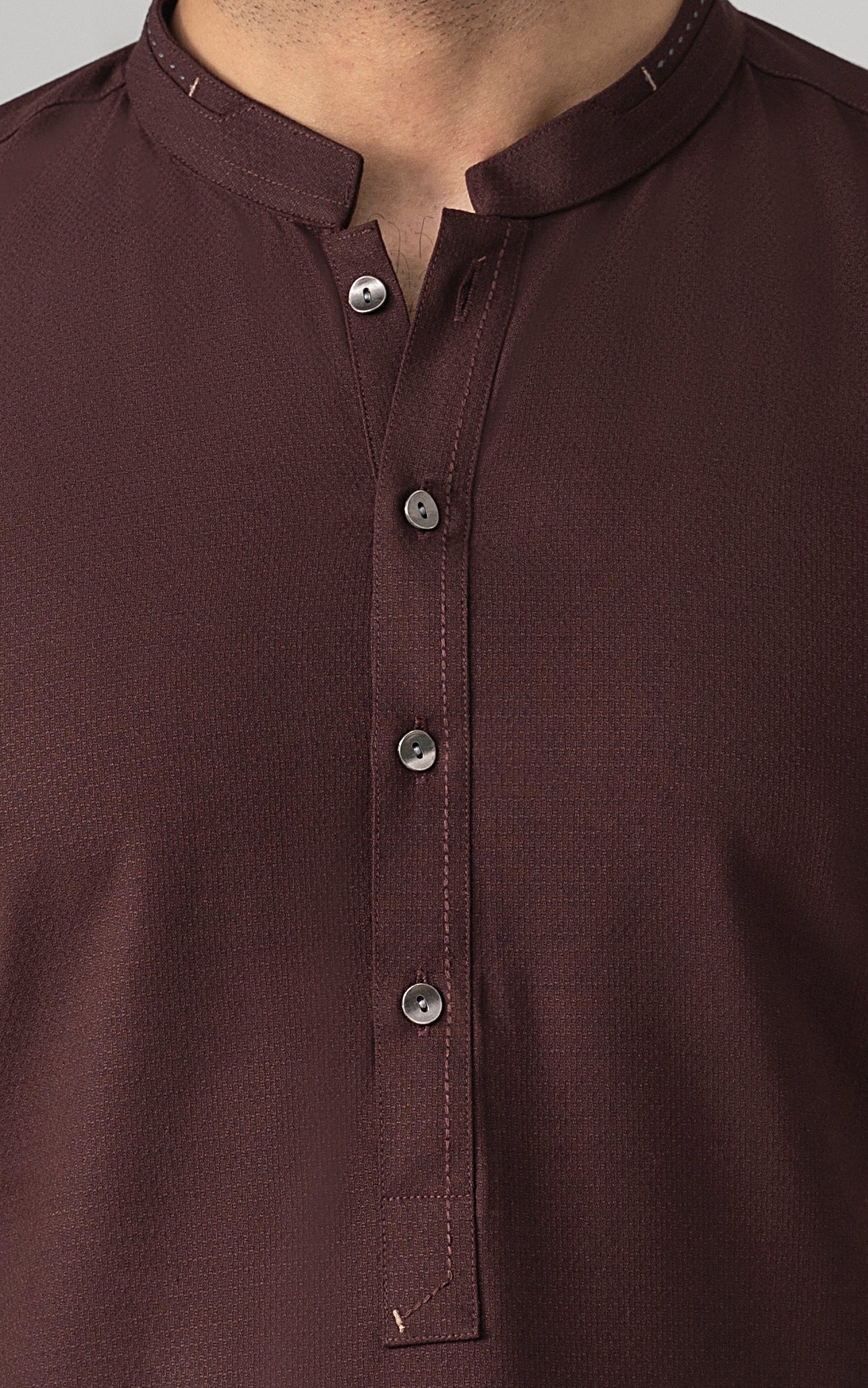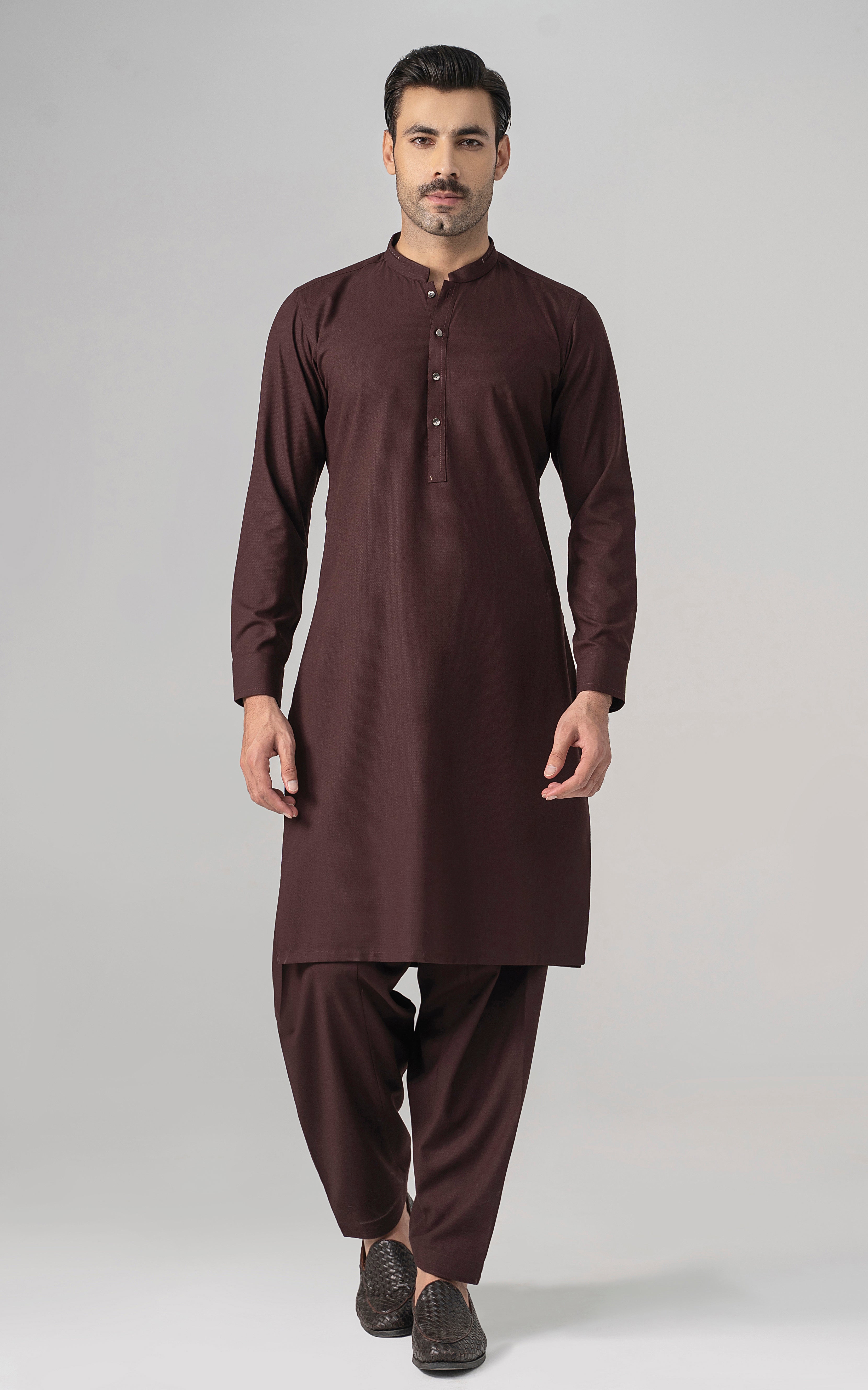 this article is crafted from the finest premium fibers of polyester and viscose. the fabric is meticulously construsted with traditional and intricate self texture, seamlessly blending classic elegance with contemporary style. embrace this festive season in these exquisite outfits, designed to ensure you, look your best. the article is accesible in light, medium hues. mandarin ban stitching and trim details on ban visible placket stitching details on front placket and cuff straight cuff straight hem special metal buttons textured dobby fabric