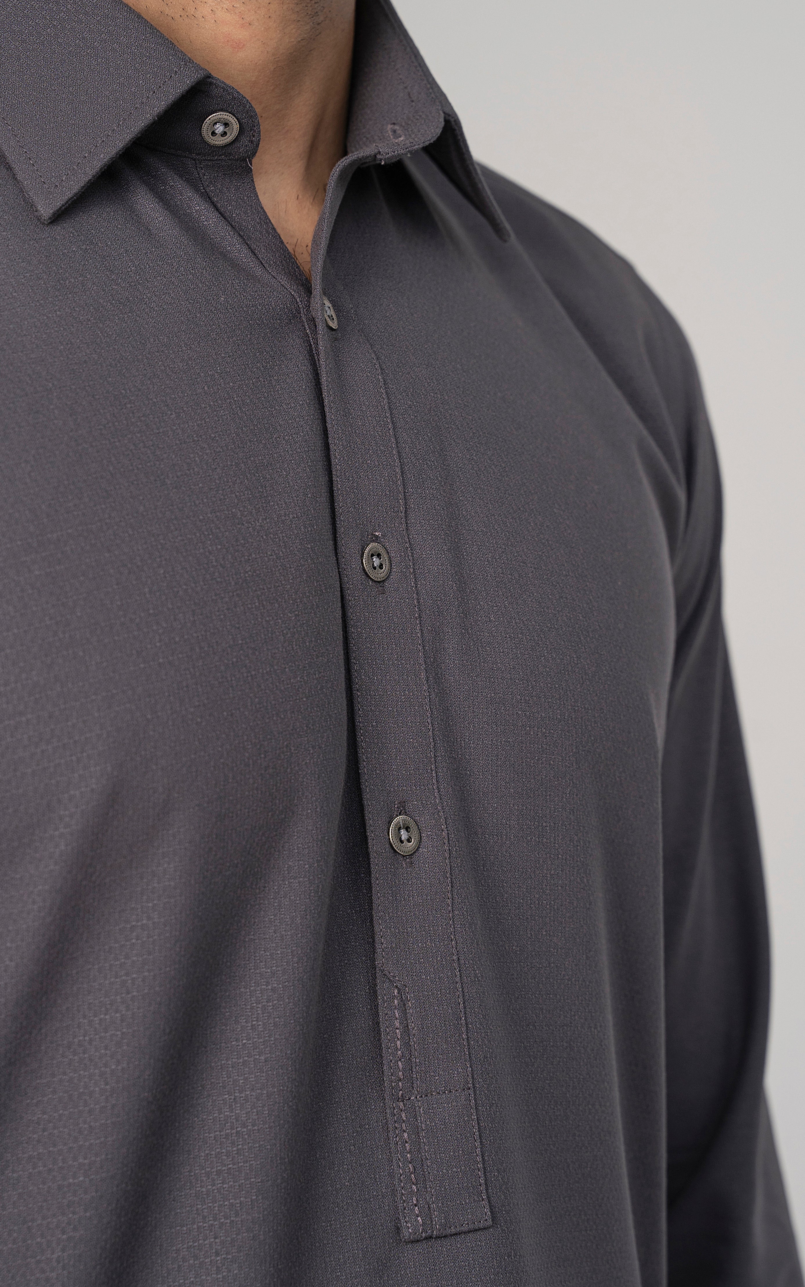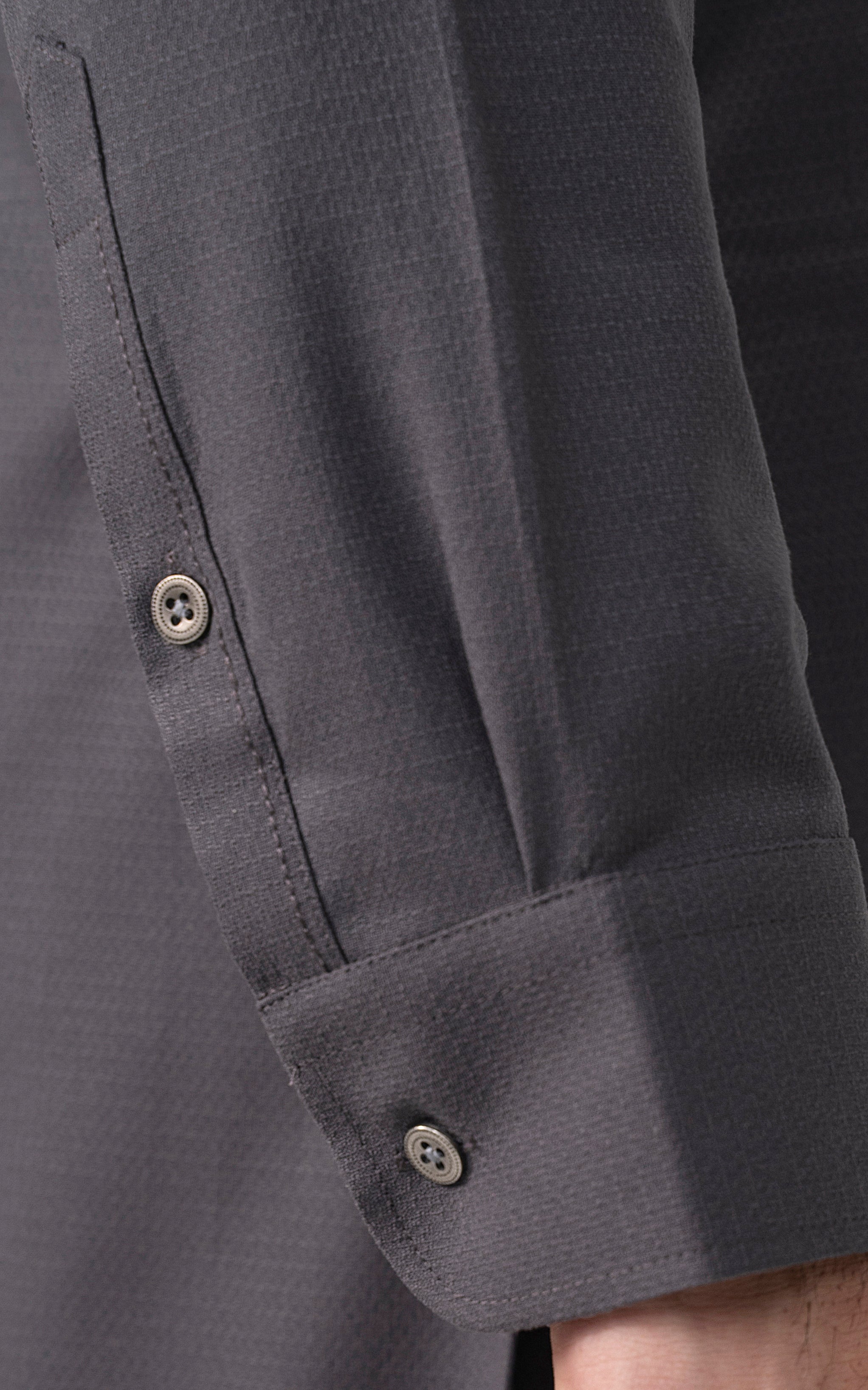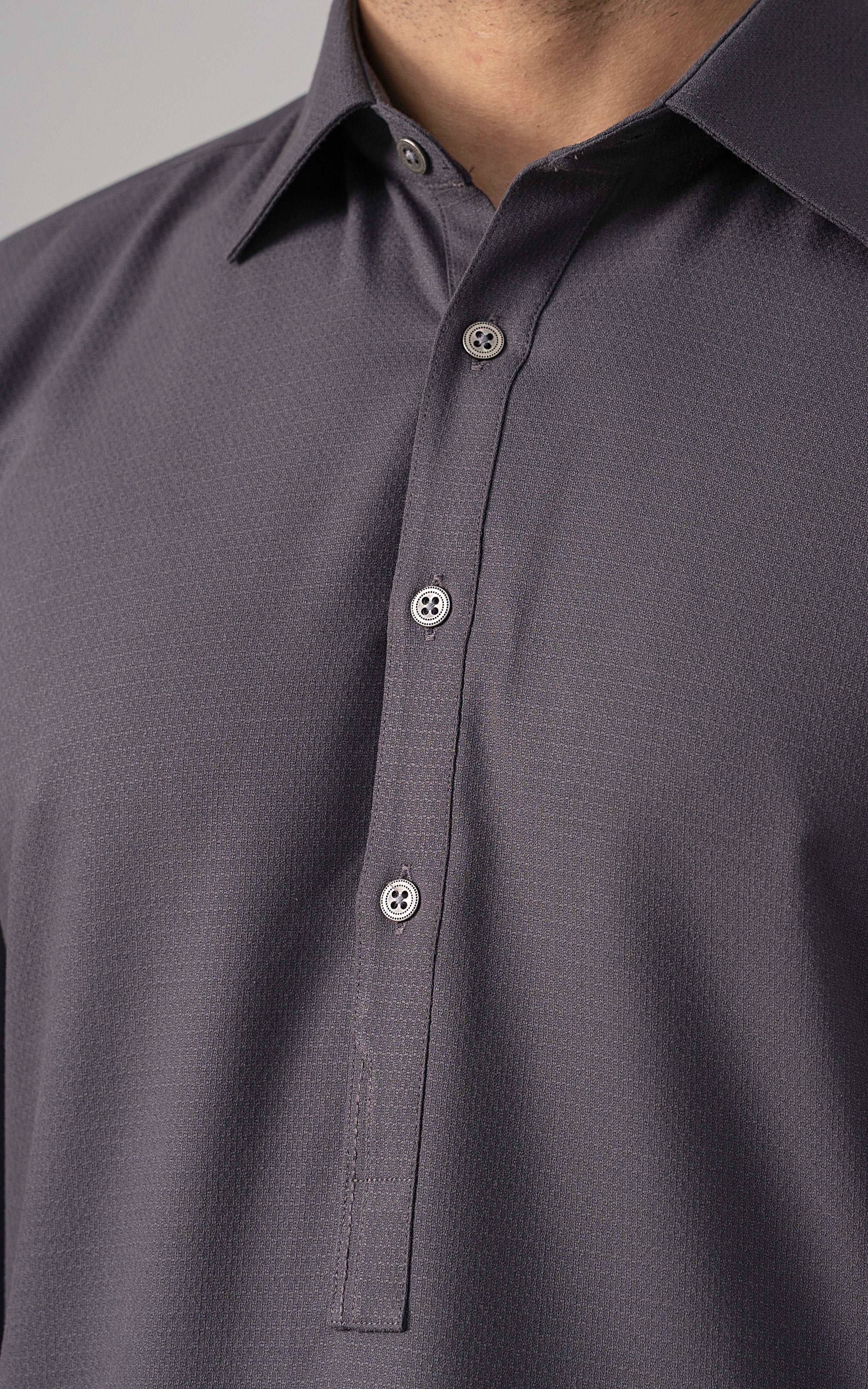 this article is crafted from the finest premium fibers of polyester and viscose. the fabric is meticulously constructed with traditional and intricate self texture, seamlessly blending classic elegance with contemporary style. embrace this festive season in these exquisite outfits, designed to ensure you,look your best. the article is accessible in light, medium hues. regular collar visible placket stitching details on front placket anchor details on sleeve placket round cuff round hem special metal buttons textured dobby fabric