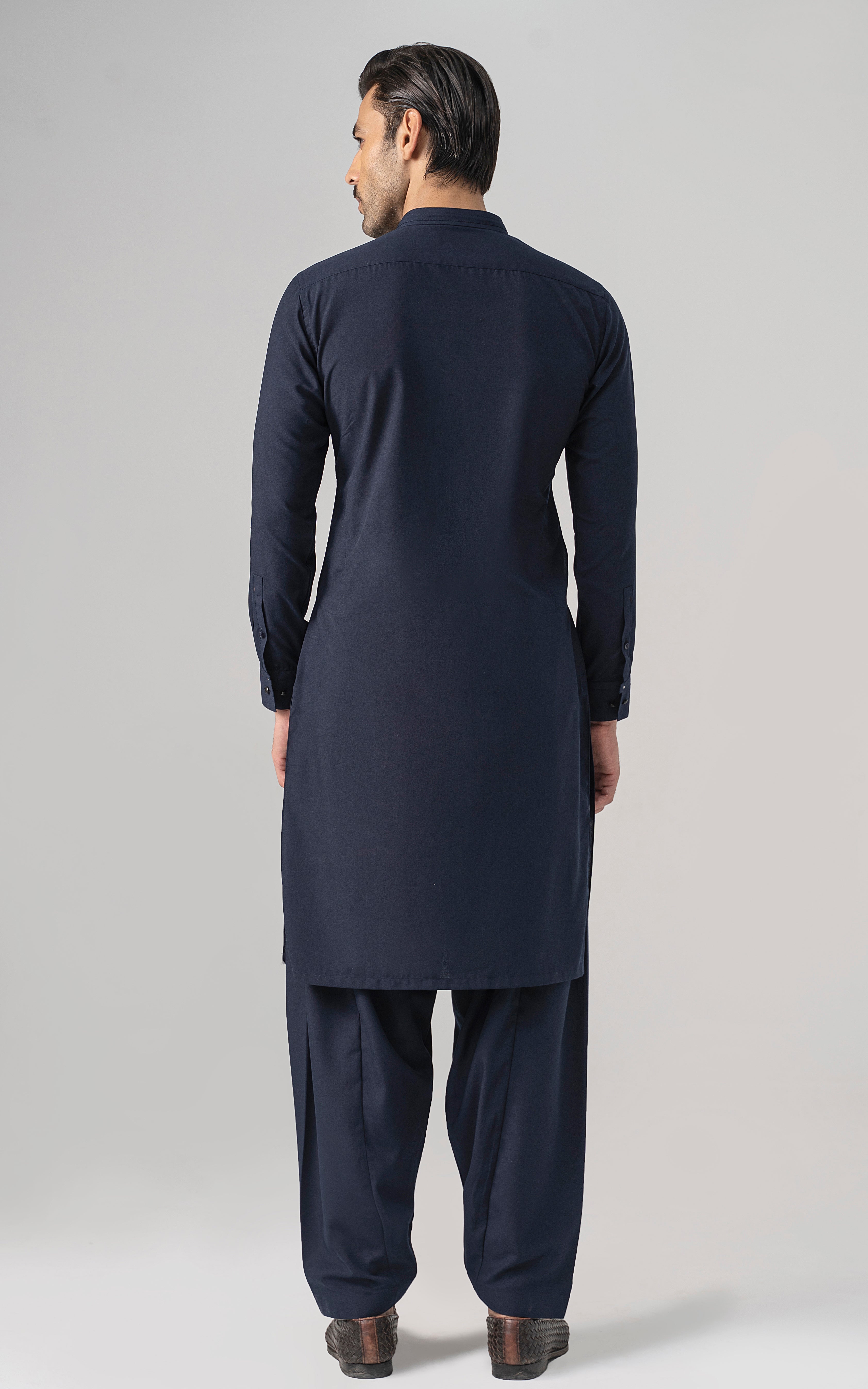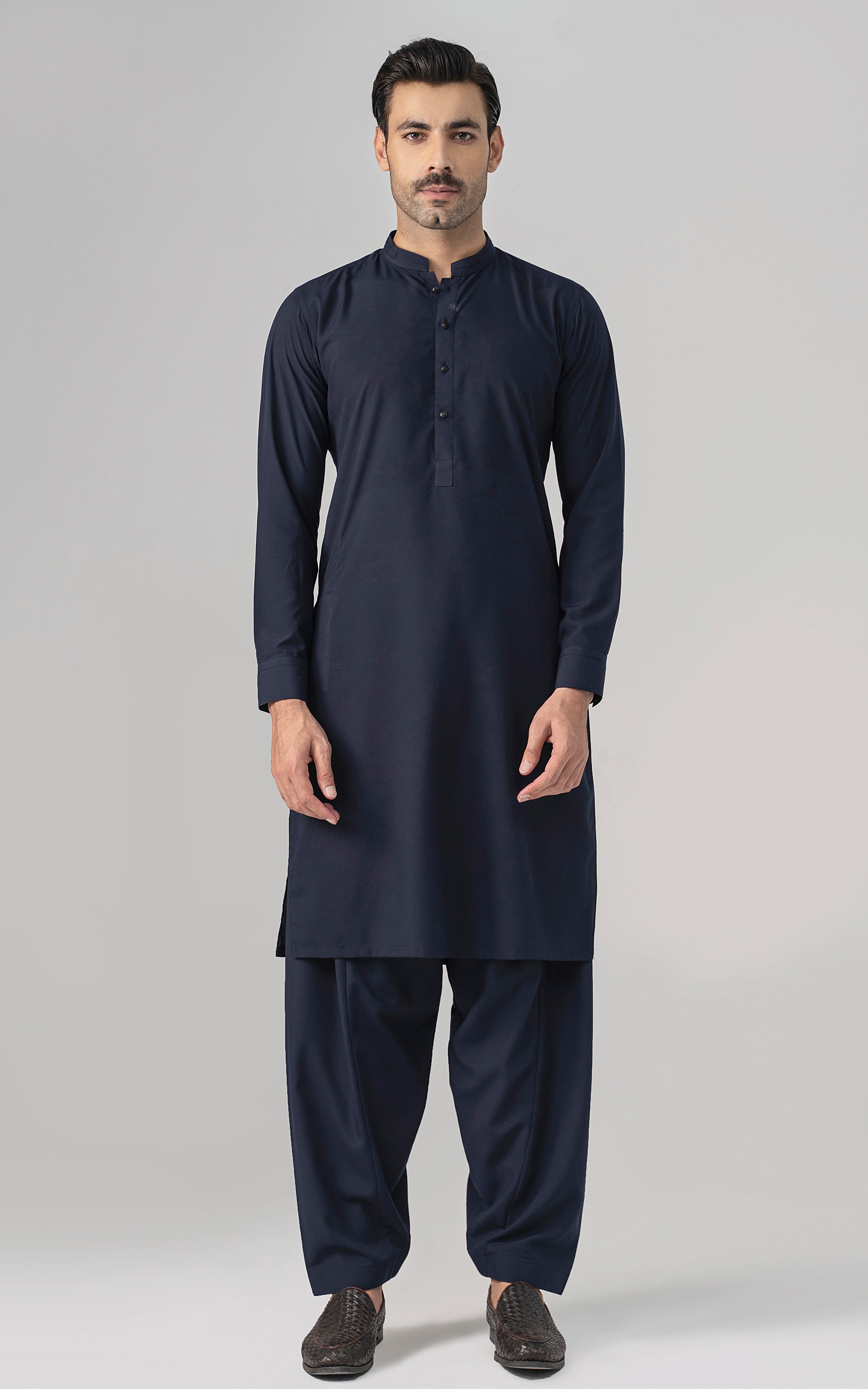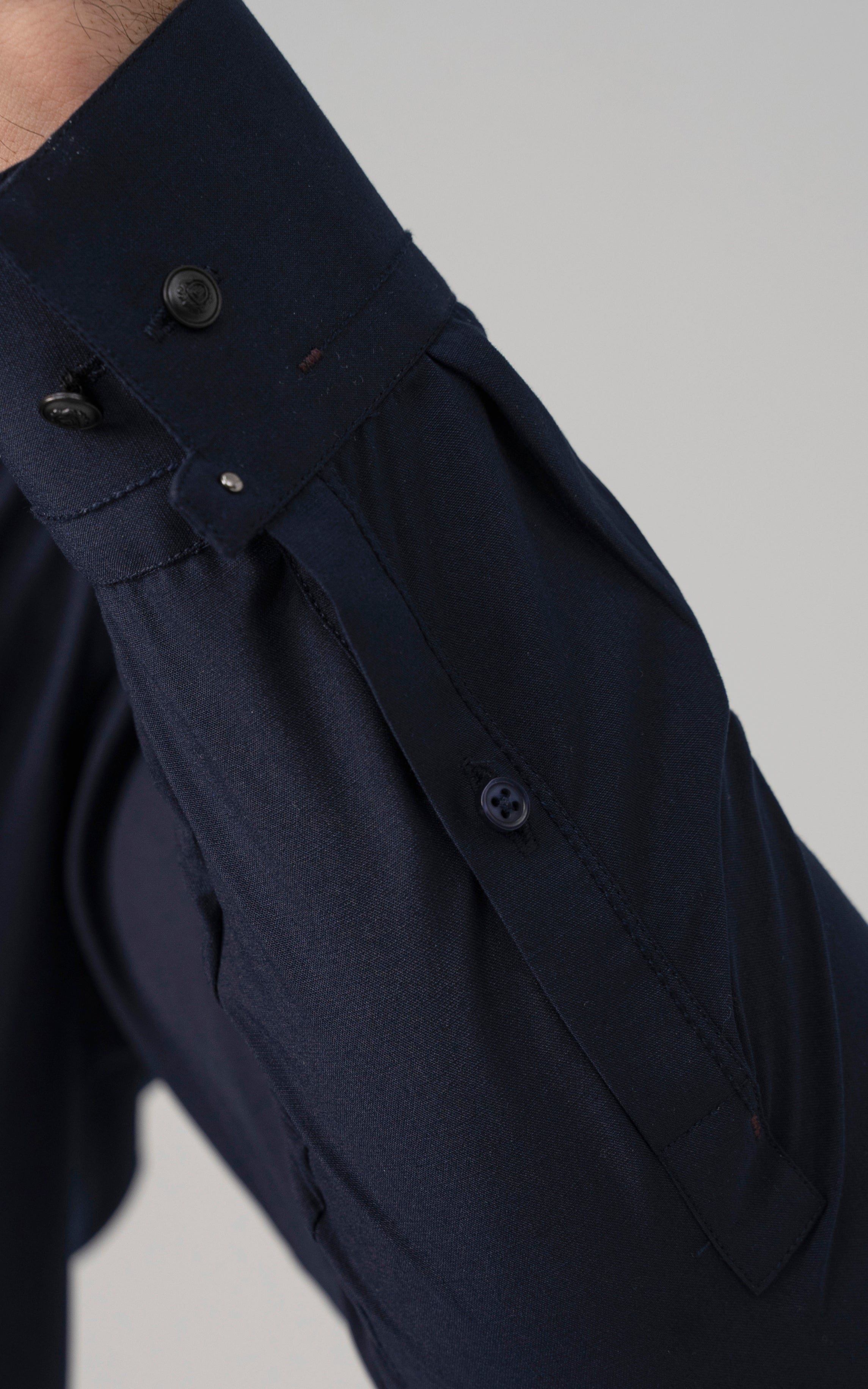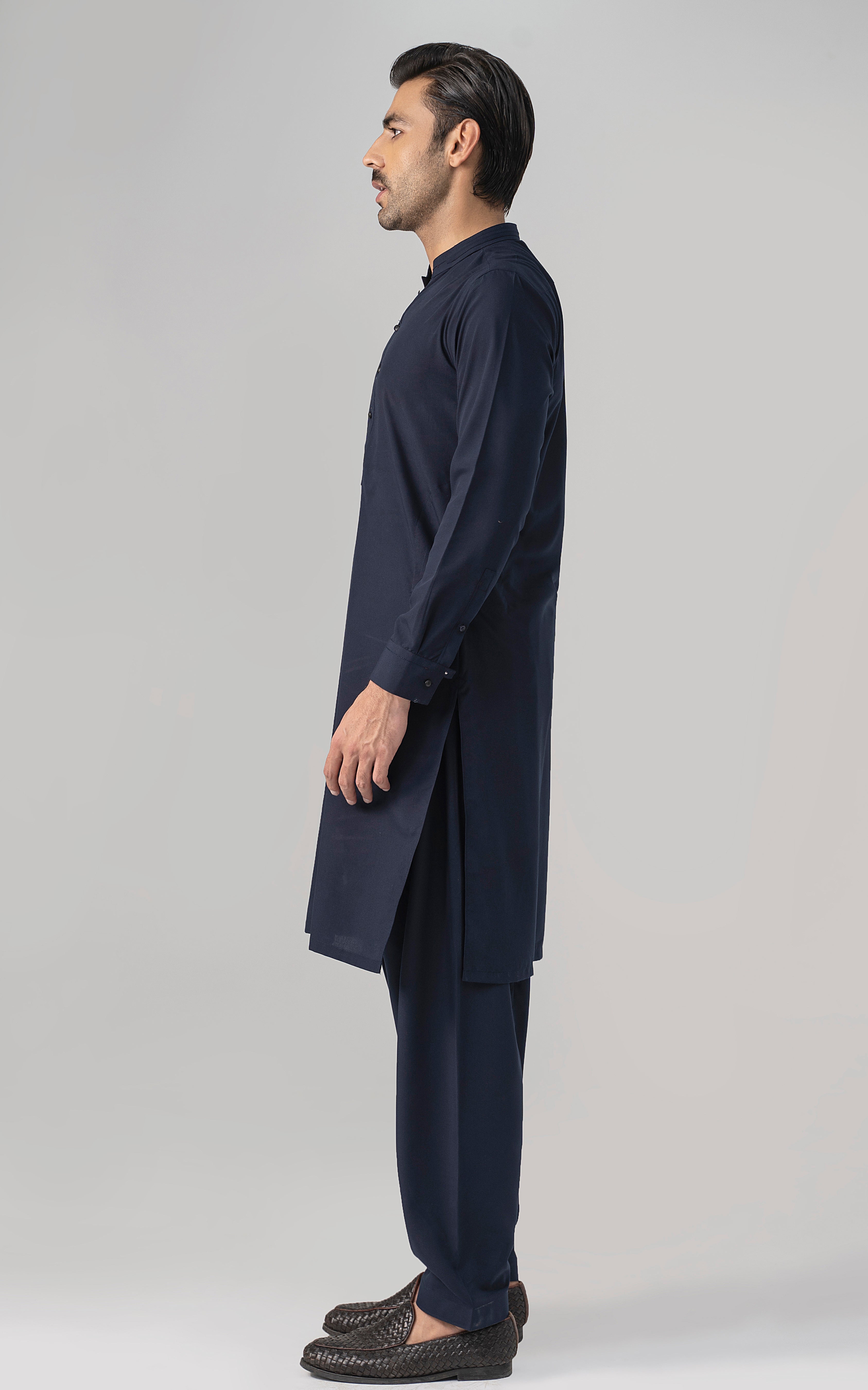 this blended wash & wear fabric is comprised of polyester and viscose for unparalleled comfort and durability. it is an exceptionally comfortable fabric which aims to achieve unmatched levels of satisfaction in this winter season. this article is accessible in dusky dark hues. mandarin ban, stitching details on ban, visible placket, stitching and trim details on cuff, straight cuff, straight hem, special buttons, blended wash & wear fabric.