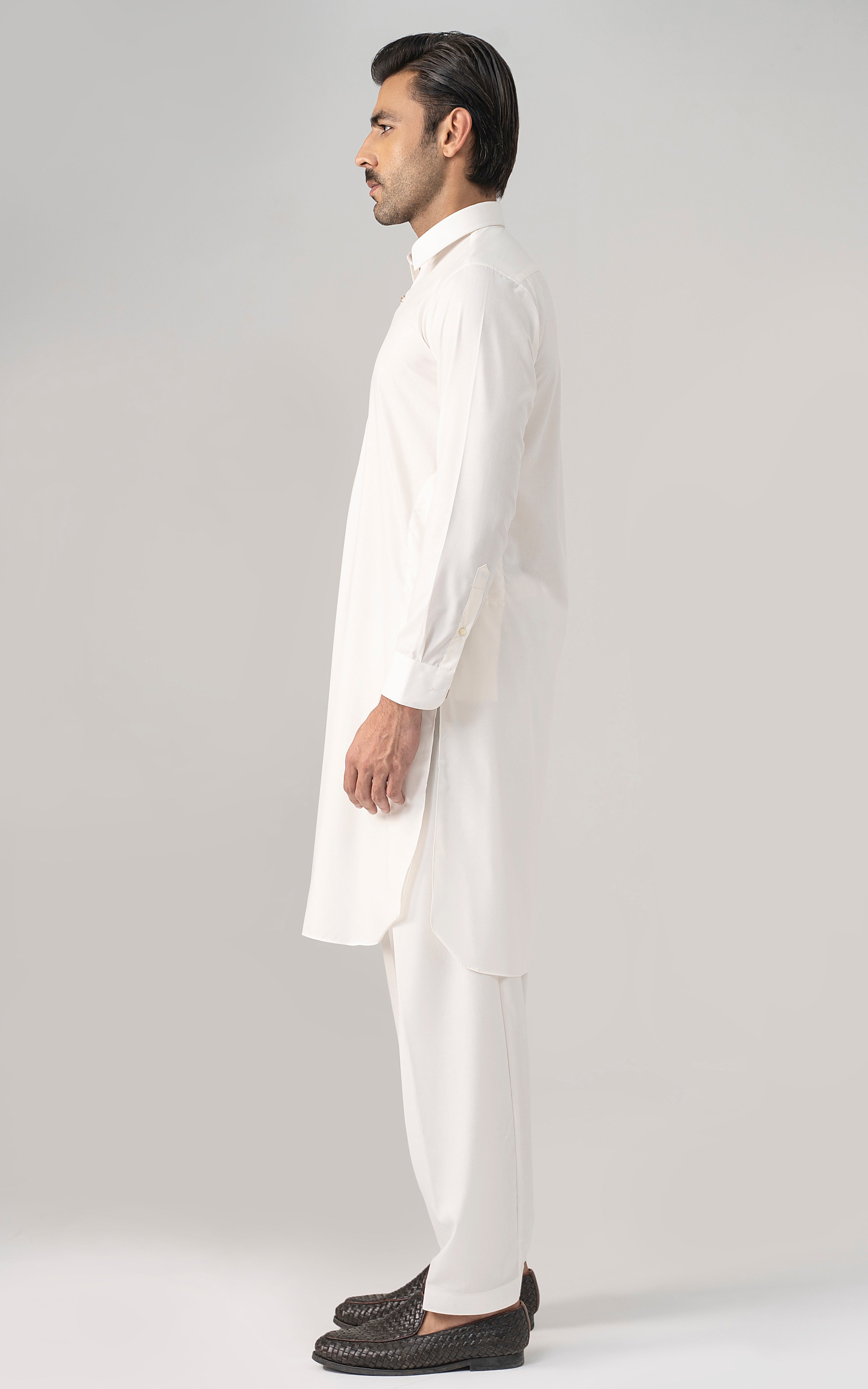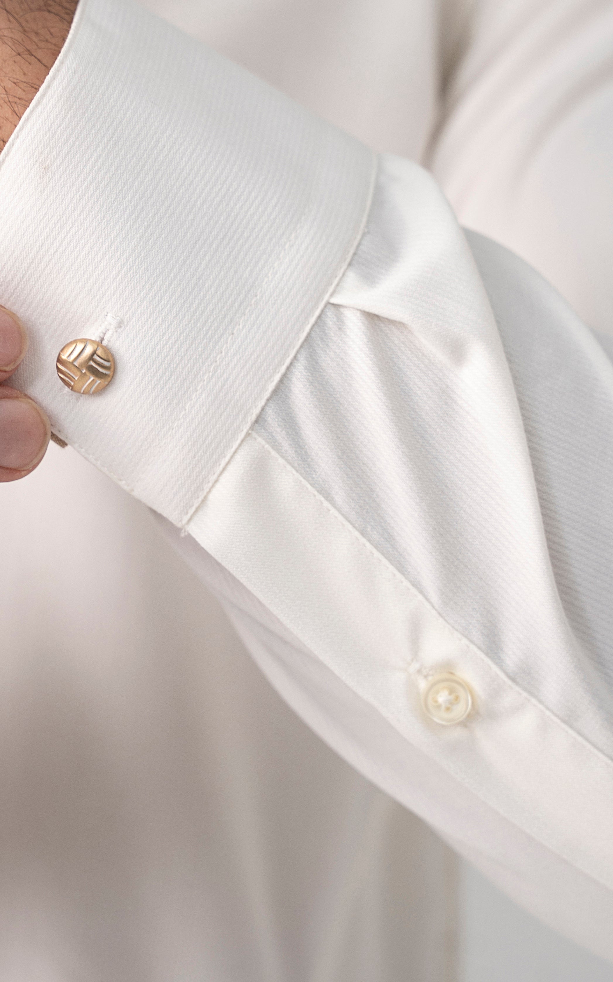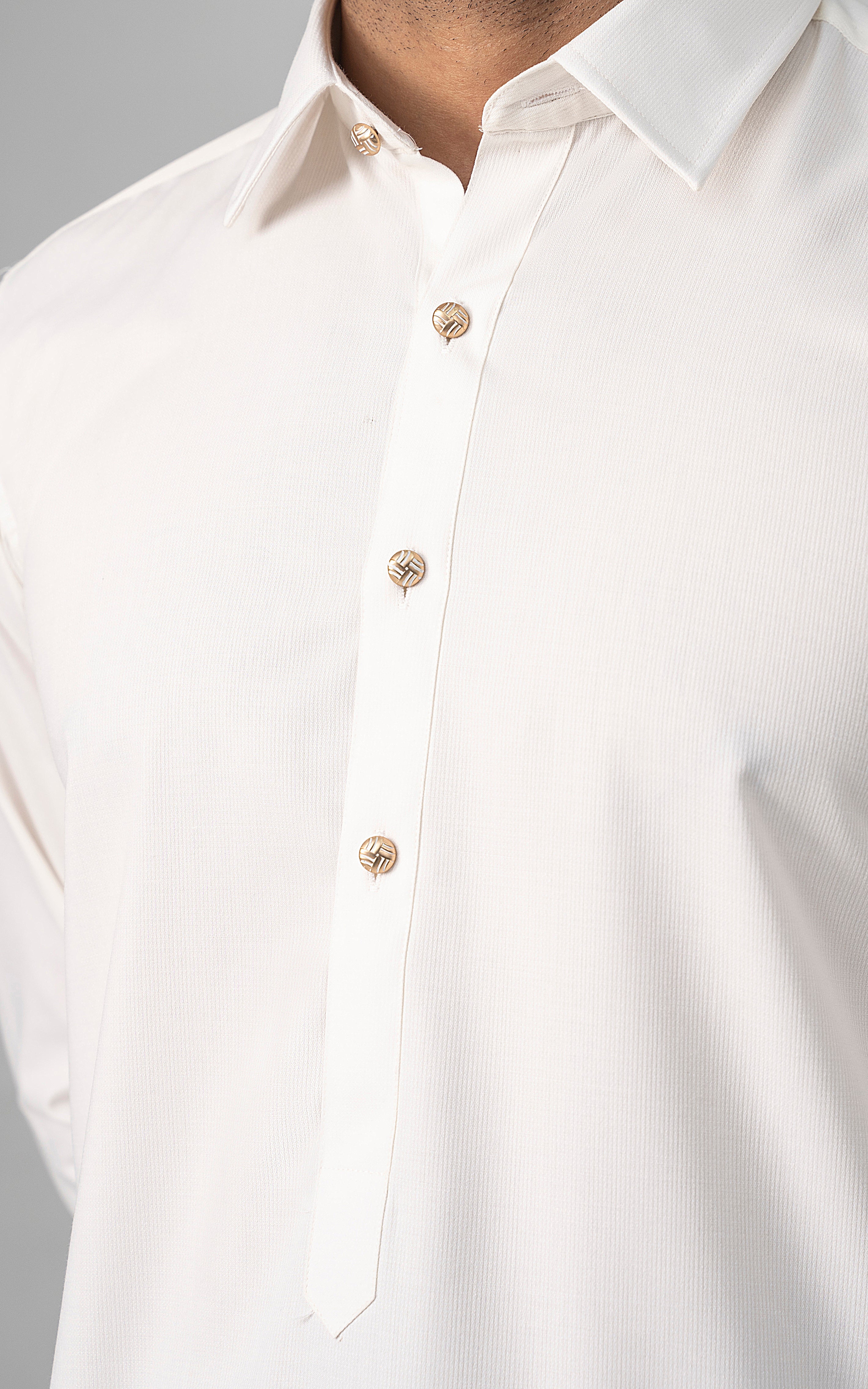this textured blended fabric is the most eminent fabric in our signature collection. the perfect fusion of polyester and viscose combines royalty with perfection. a masterpiece from our blended collection, it epitomizes sophistication and innovation. the article is accessible in light hues. french collar inside ban piping visible placket round cuff piping details on cuff round hem special buttons textured blended fabric