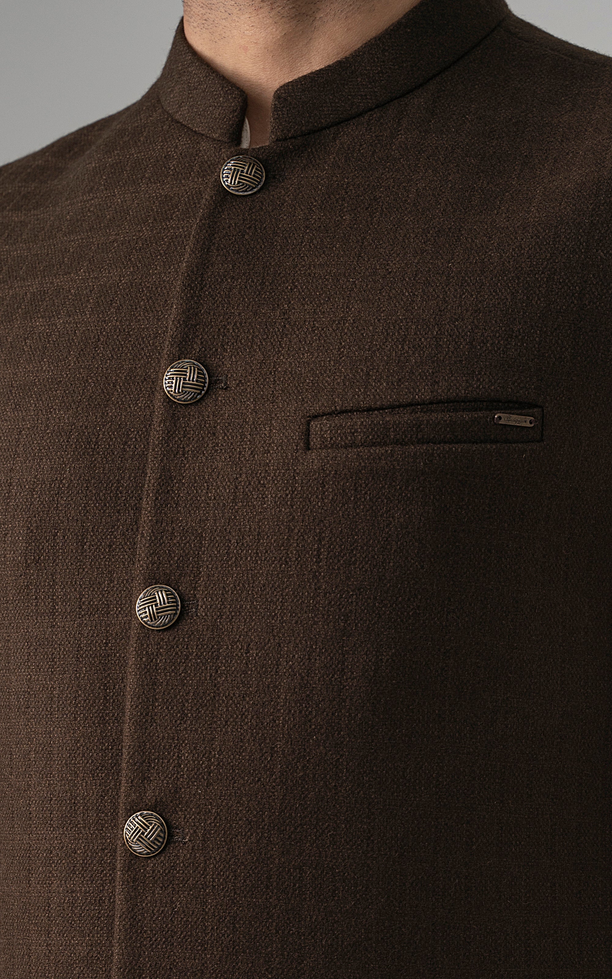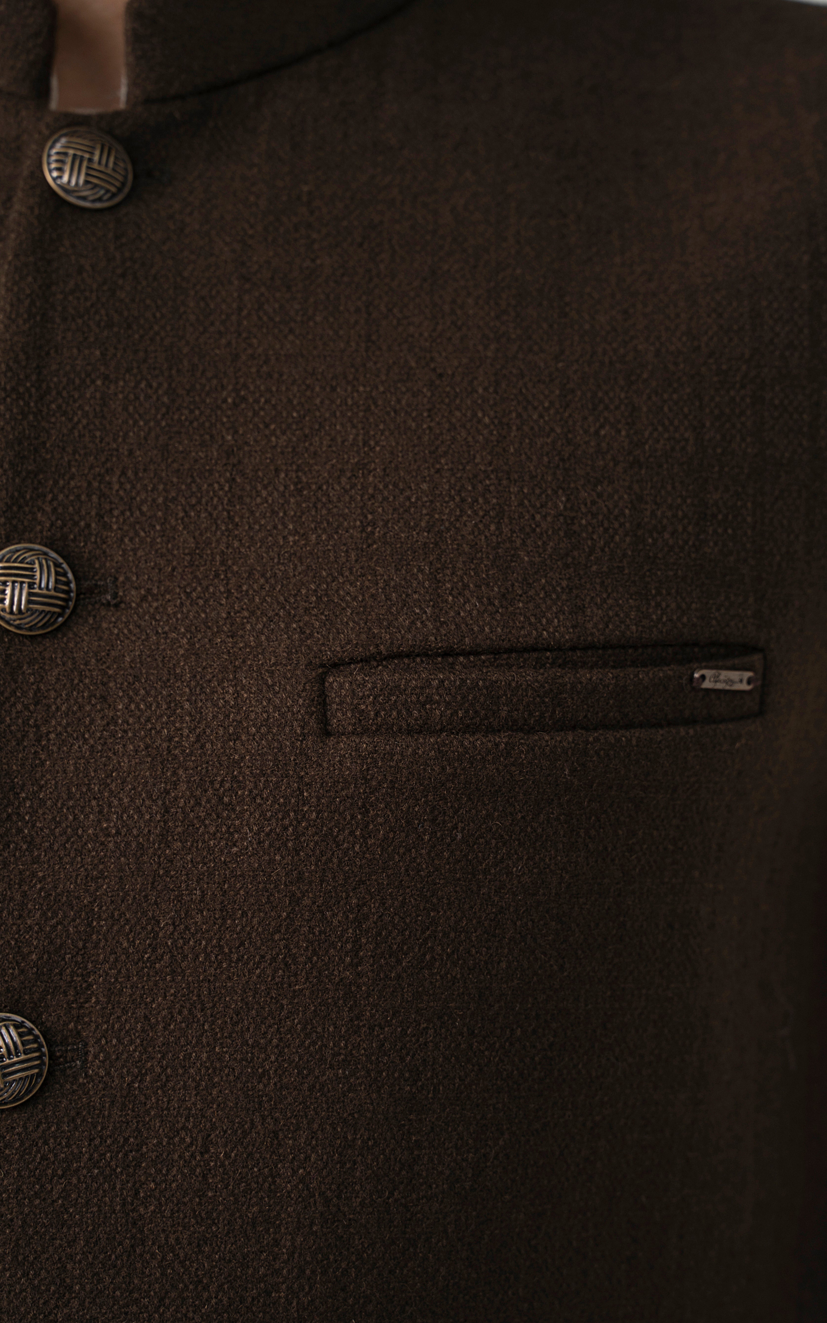 this is one of the most eminent fabric in our blended wool collection. this masterpiece is a class by itself when worn. this astonishing wool blend is an excellent fabric which will give you a classy look. it has only dark colors in its palette. straight ban upper front single bone pocket with trim detail single bone pockets on front visible placket full contrast lining inside straight hem special buttons textured woolen waistcoat