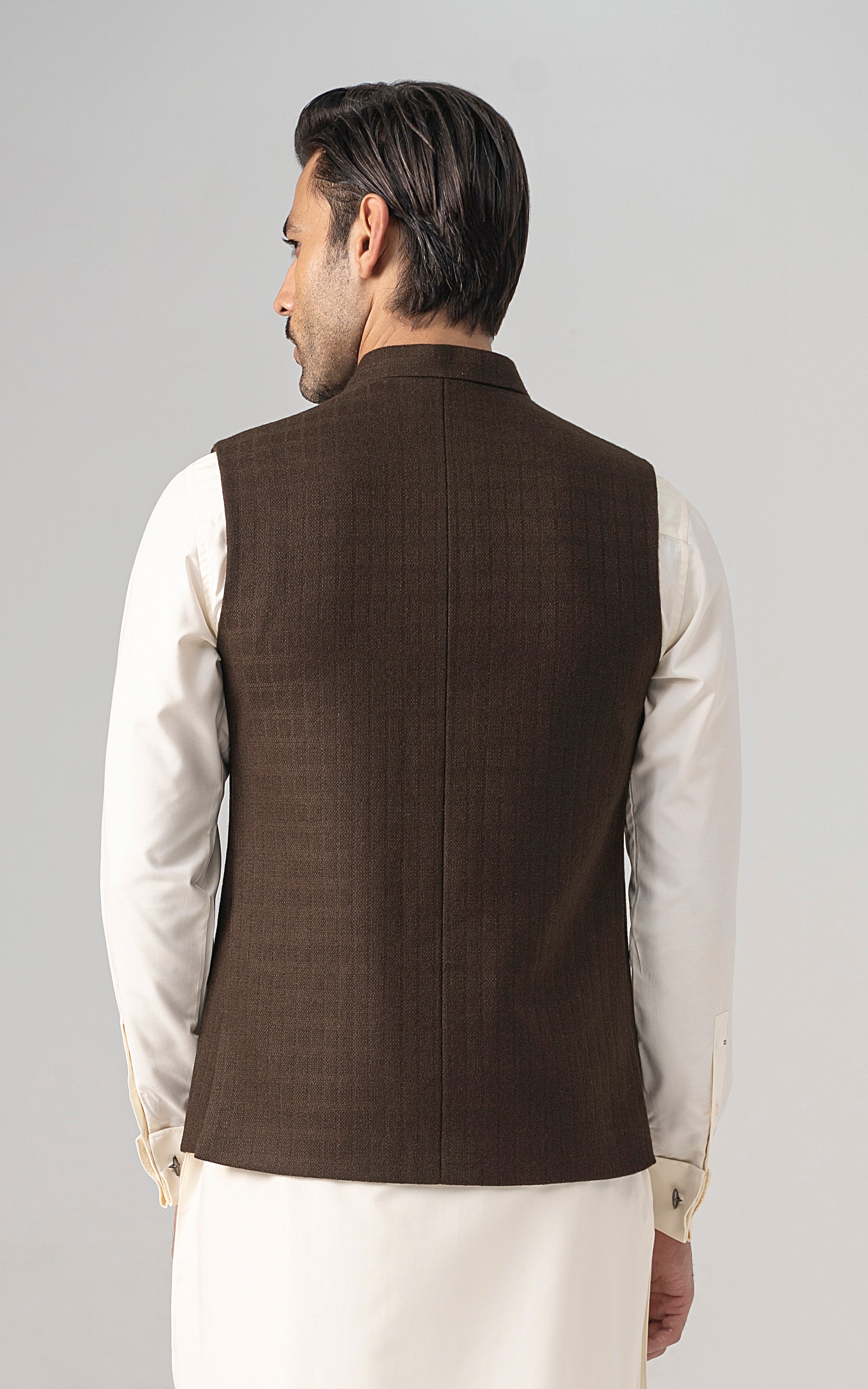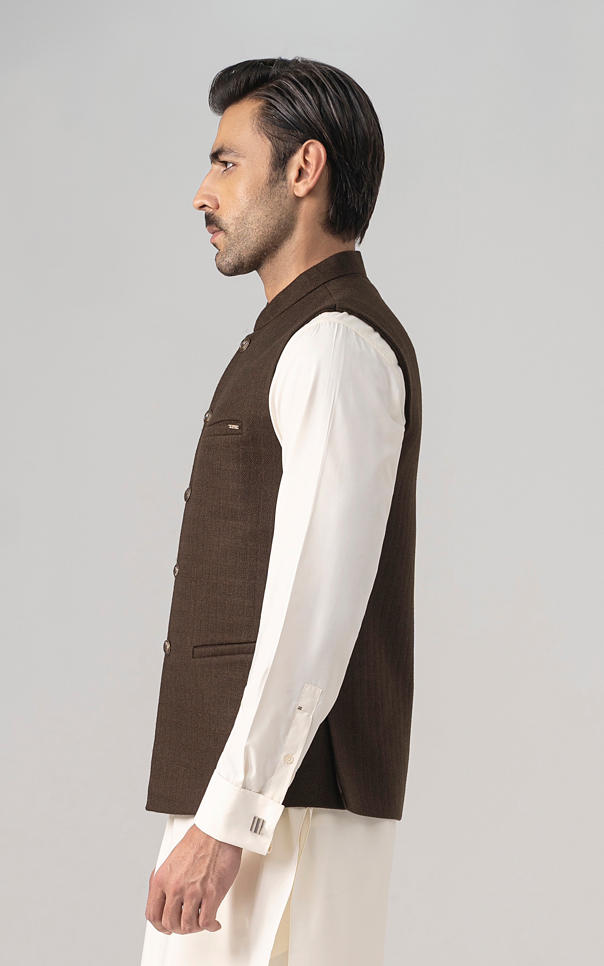 TEXTURED WOOL BLENDED WAISTCOAT - SIGNATURE COLLECTION MID BROWN