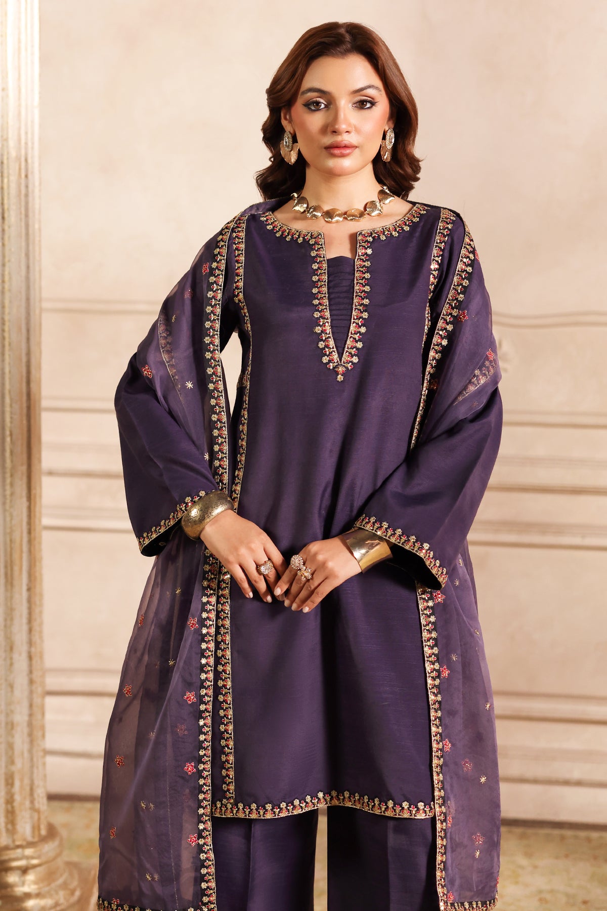 shirt : raw silk shirt with embroidered neck and embroidered all over front back laces. embellished with patch work. finished with stitching detail. trouser : raw silk trouser. finished with stitching detail. dupatta : organza embroidered dupatta. size : s m l measurement length 37" 39" 41" flare/daman width 26" 28" 30"
