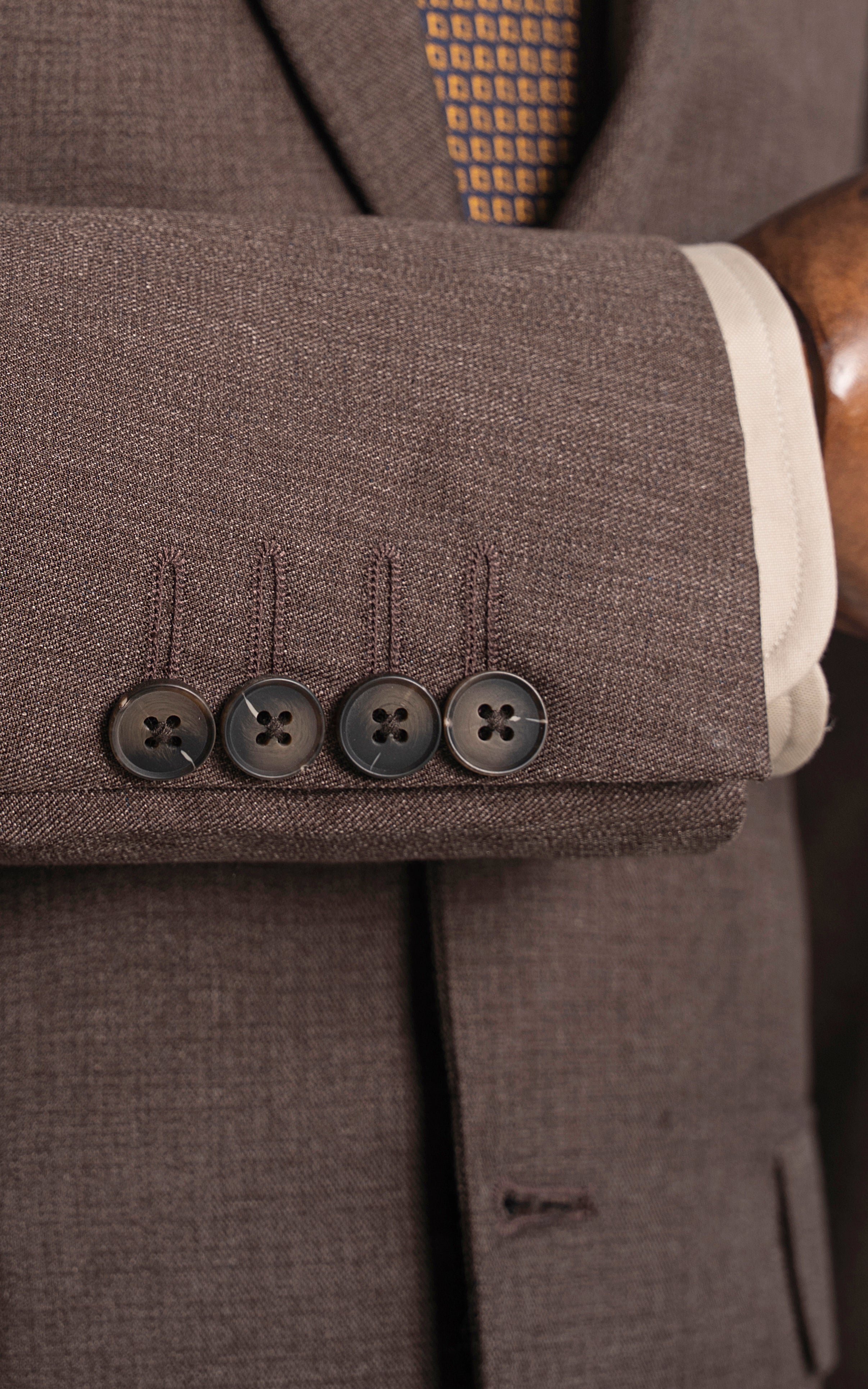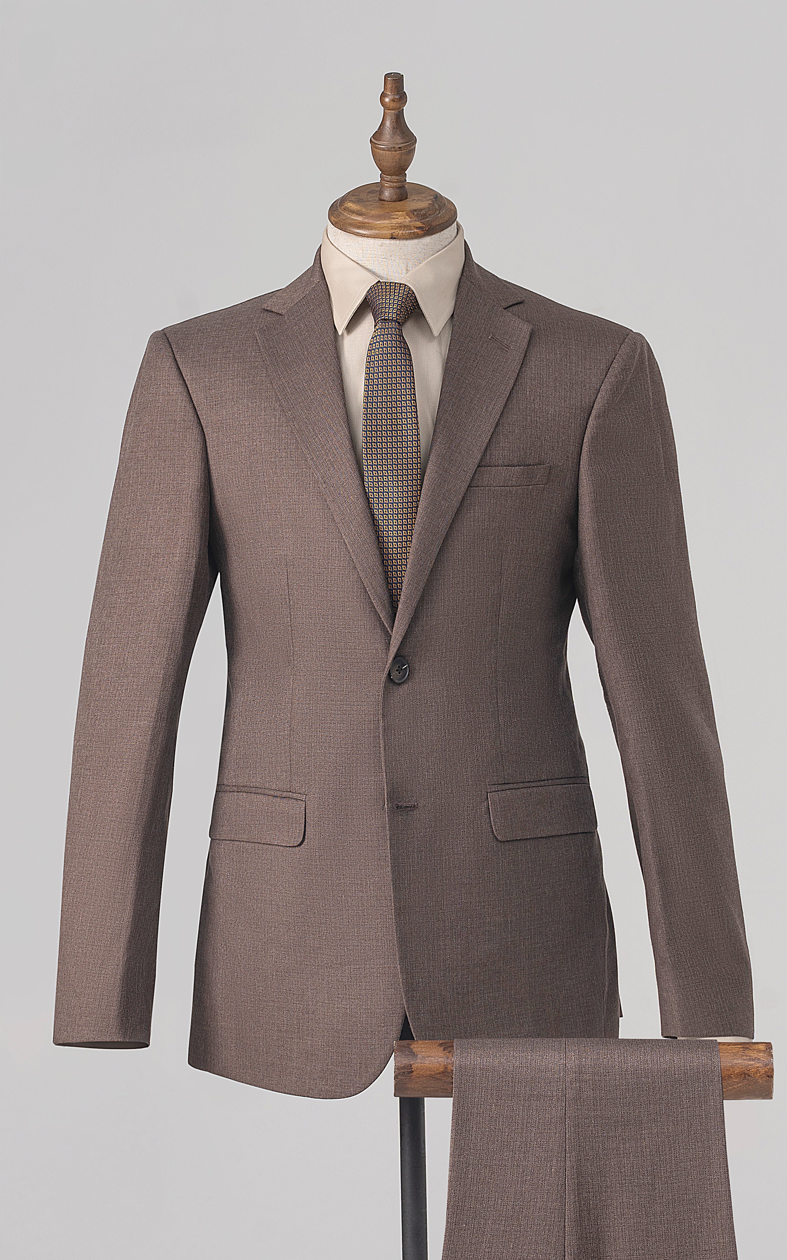 this distinguished three-piece suit features a notch lapel and a refined two-button closure, embodying classic sophistication. the front flap pockets enhance both style and practicality, while the back's two side vents provide added comfort and ease of movement. crafted from tropical self-fabric, the suit is designed for breathability, making it ideal for warmer climates. the slim fit cut delivers a sleek, modern profile, while the u-shaped waistcoat with an adjustable waist ensures a custom, flattering fit, adding an extra layer of elegance and versatility to your ensemble.