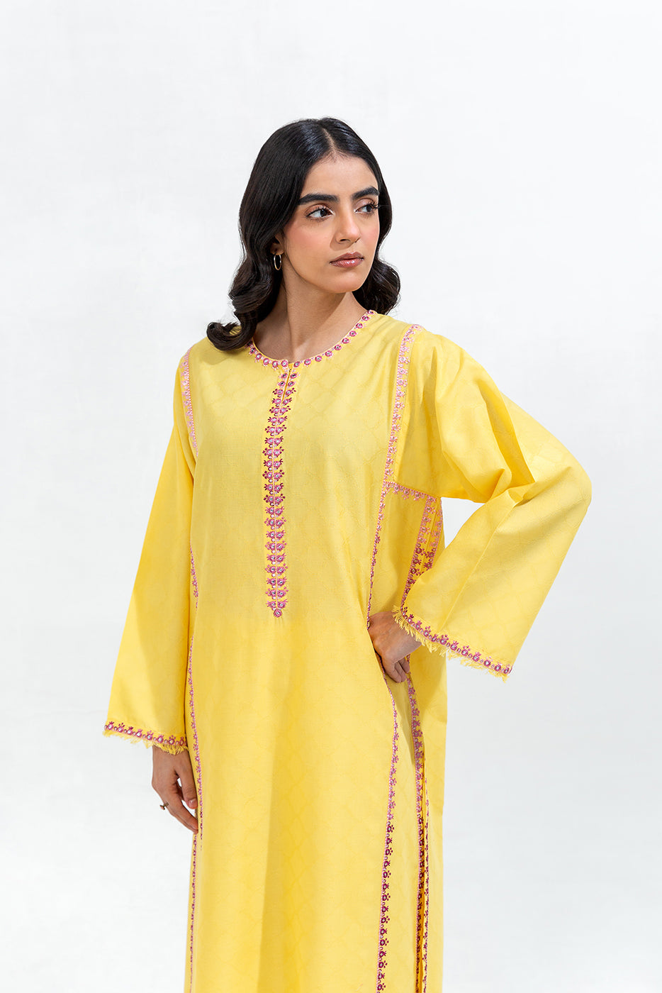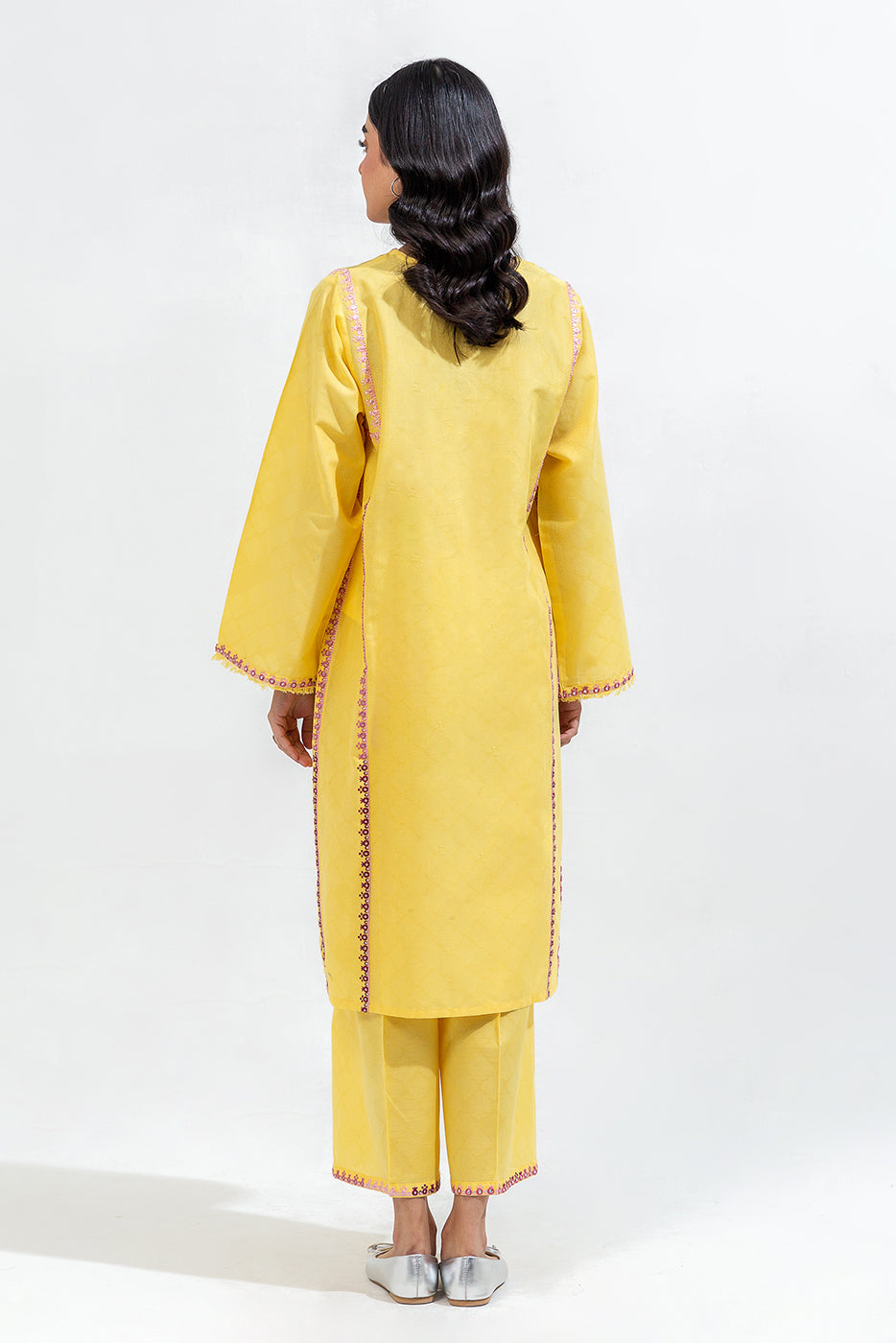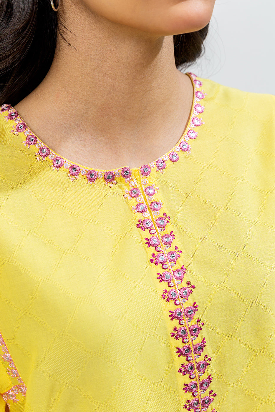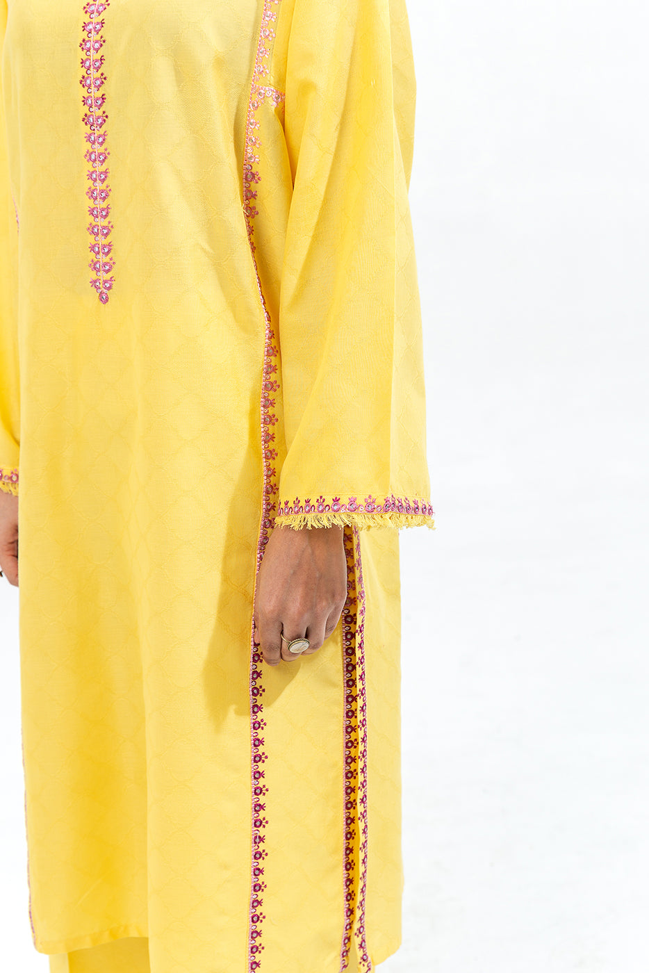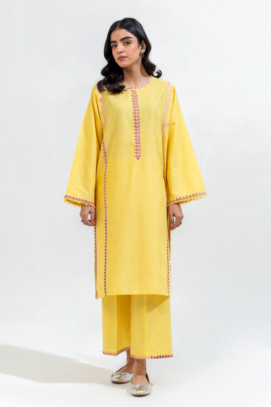 description: two peice embroidered set on dobby fabric. shirt is layerd with soft shades of pink embroidery thread and pani work paired with trousers fabric: jacquard what you'll get: shirt+pant fit: casual fit size & fit: model height is 5'6" model is wearing 8 size
