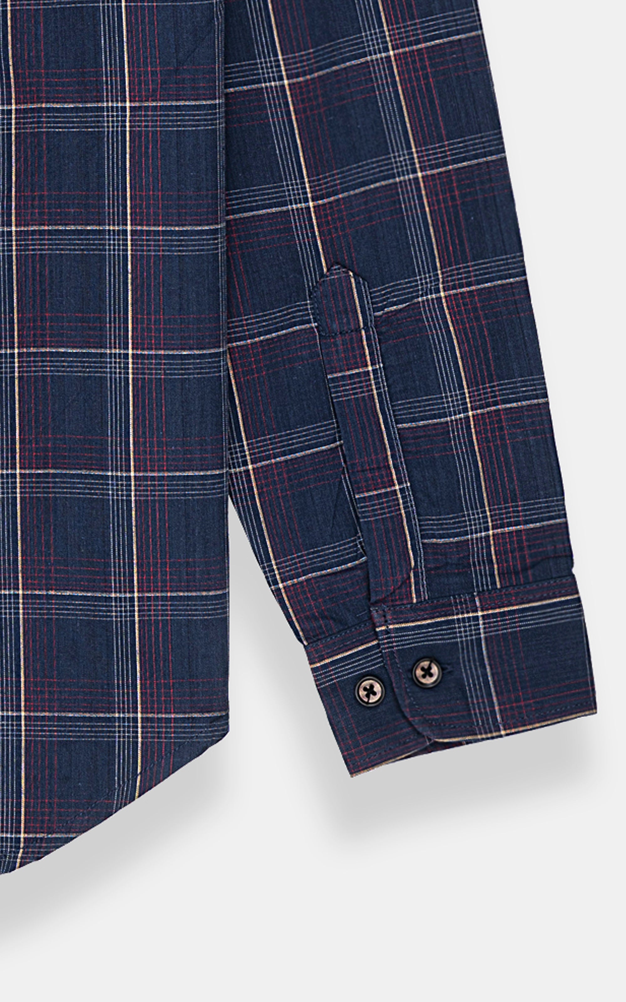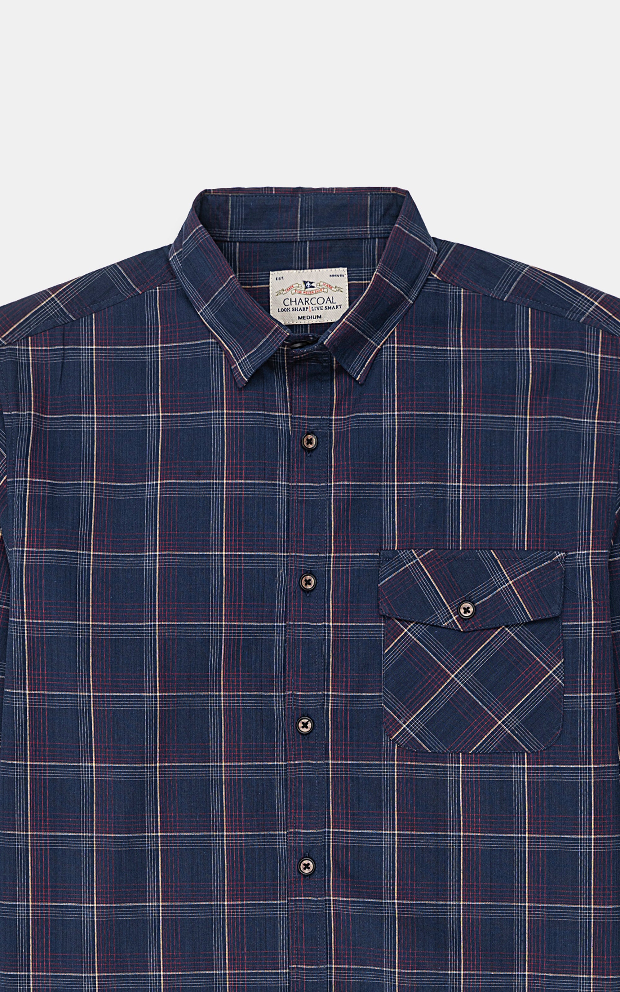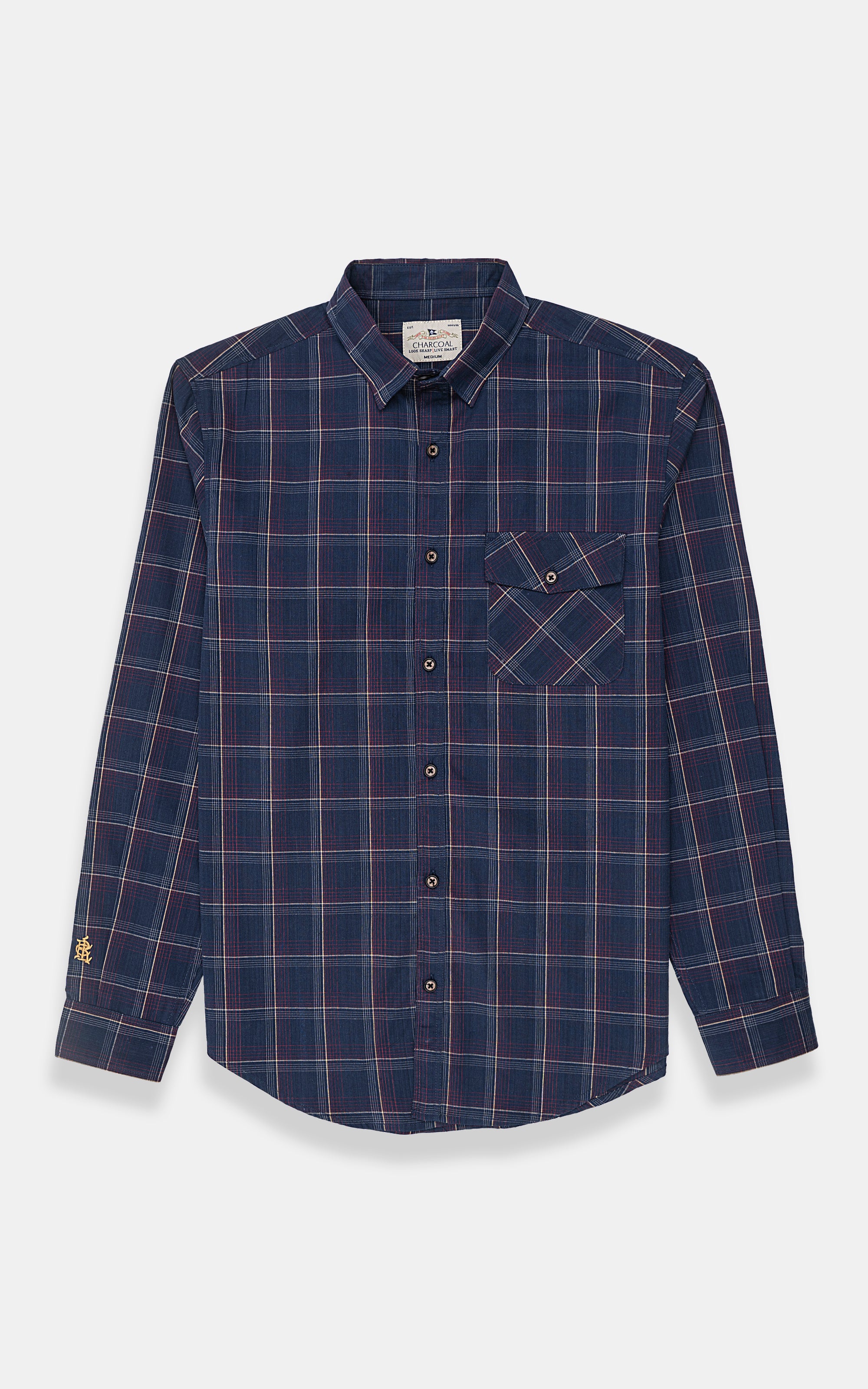 this shirt crafted from a comfortable and durable cotton fabric, this men's casual shirt combines style and functionality. featuring a button-down collar and a buttoned placket. the shirt comes with full sleeves, complete with embroidered logo detailing on the sleeve, adding a subtle yet distinctive touch. the smart fit enhances your silhouette for a sharp appearance, while the checkered pattern brings a timeless, versatile style. a front button-flap pocket on the chest adds practicality, and the round french cuffs with adjustable cuff buttons allow for a customizable fit. the gently rounded hem completes the design, offering a polished, casual look.