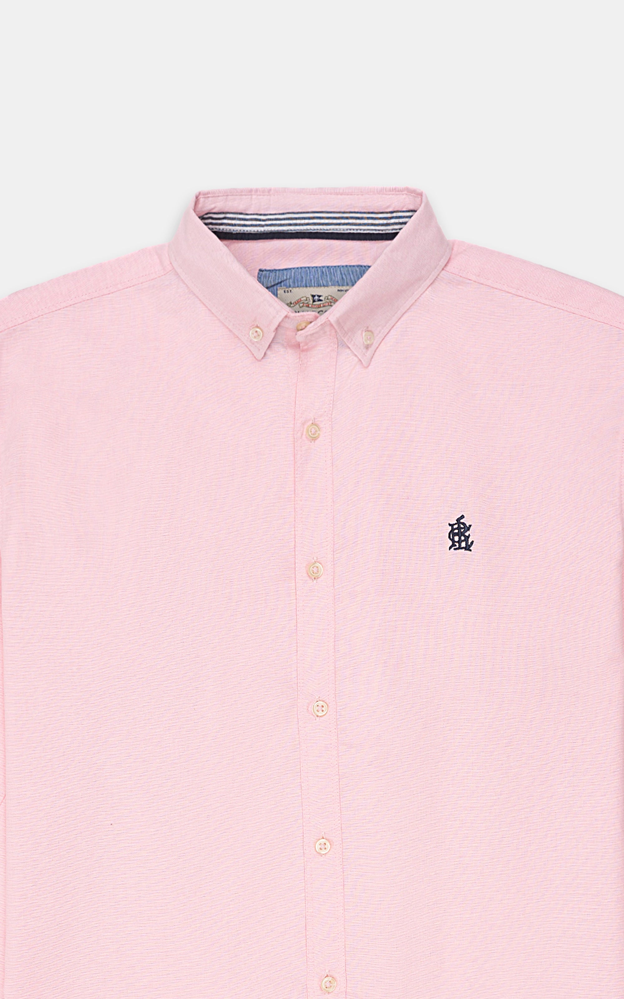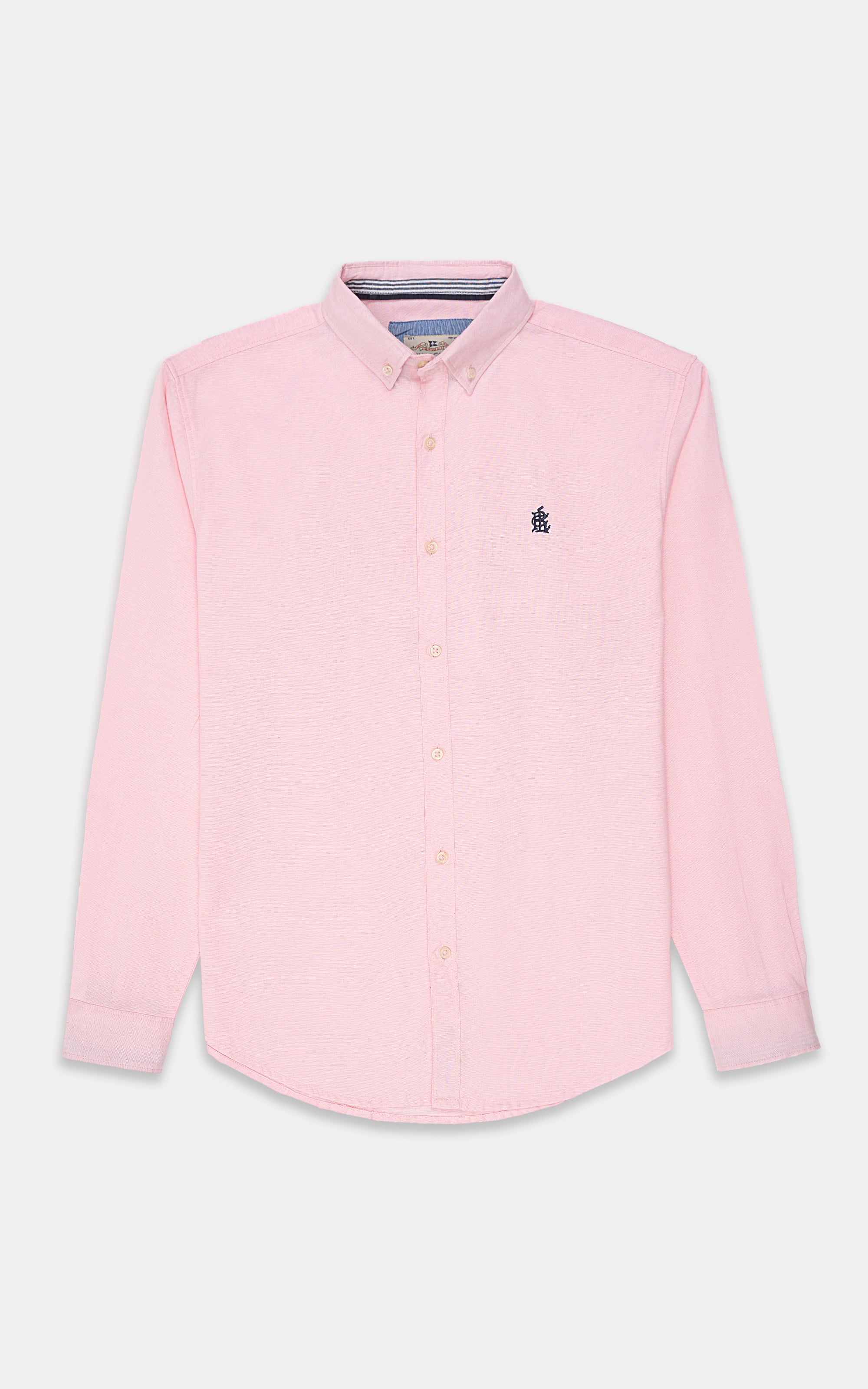 enhance your casual style with this smart-fit men's shirt, crafted from cotton fabric that combines comfort with a subtle, refined pattern. this shirt features full sleeves with adjustable button cuffs for a custom fit. an embroidered logo on the chest adds a distinctive touch, while the contrast fabric on the inner neck and sleeves creates a stylish design element. the round french cuffs give the shirt a sophisticated flair, and the gently rounded hem ensures a polished finish.