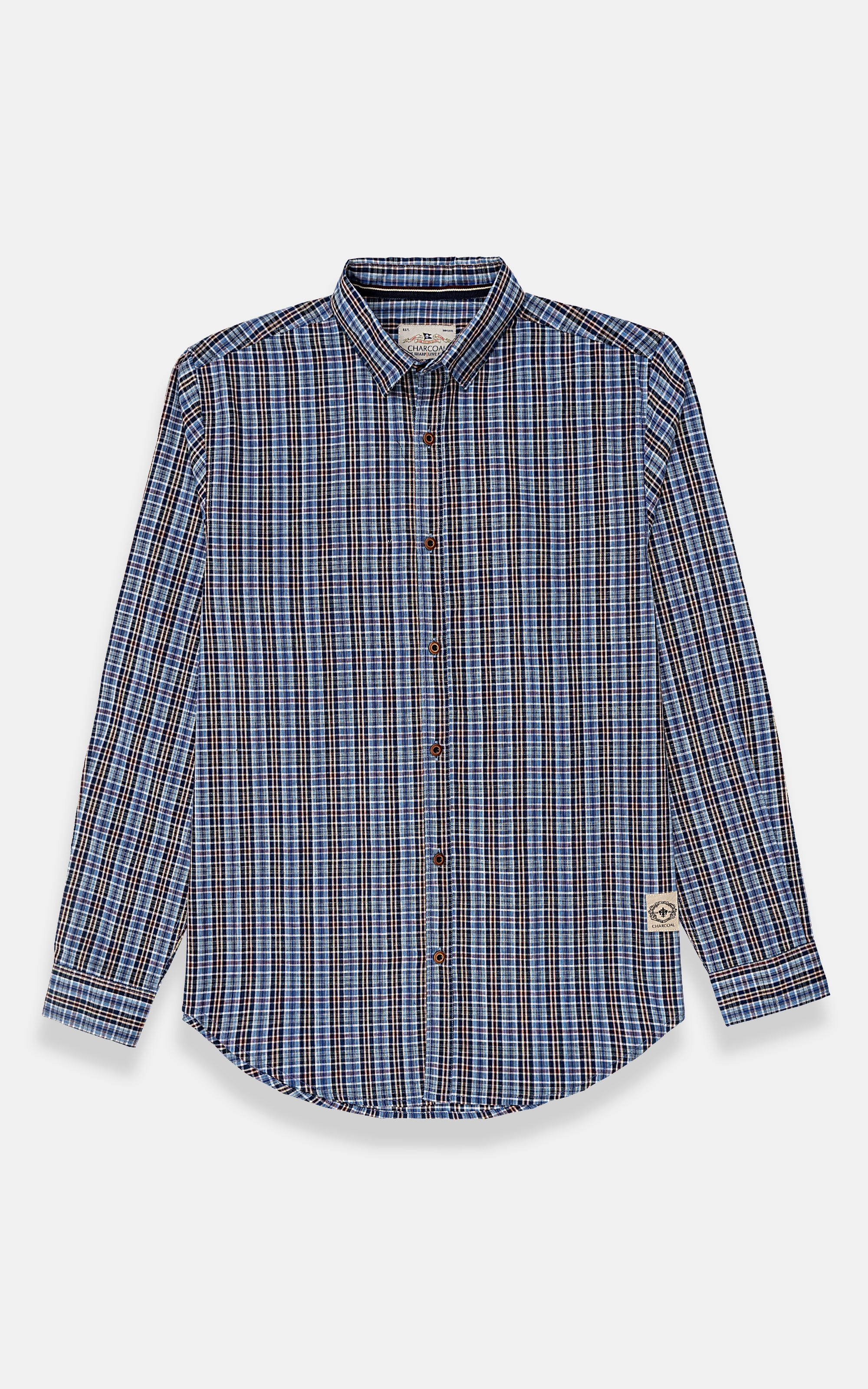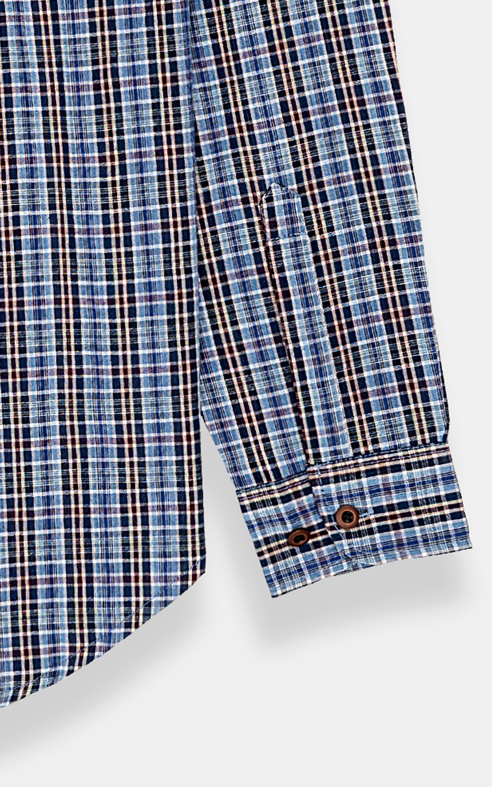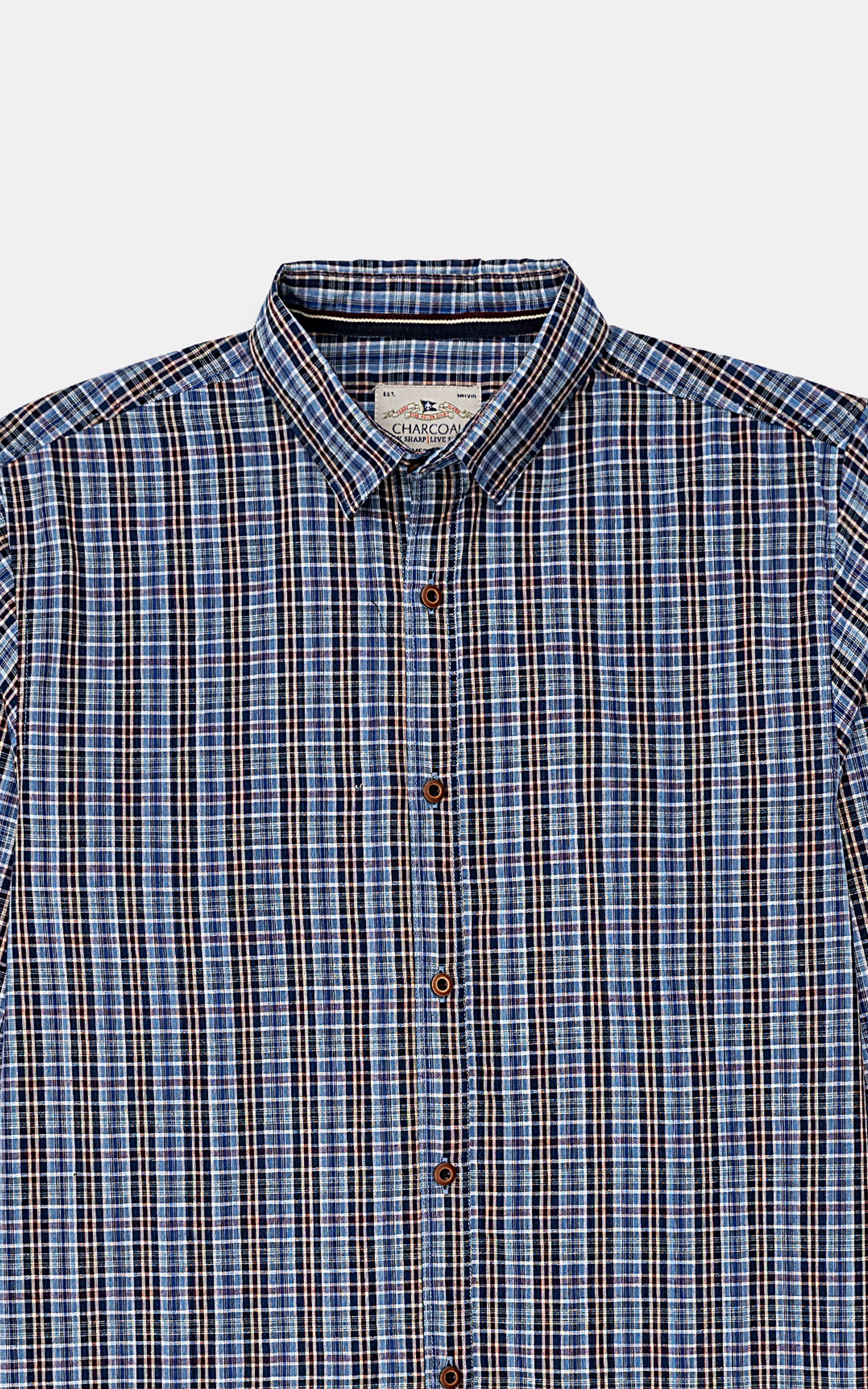 step up your style with this men’s casual shirt, crafted from premium cotton fabric for a perfect balance of comfort and durability. designed in a smart fit, this shirt features a button-down collar with a subtle contrast tape detail on the inner collar for a touch of sophistication. the buttoned placket ensures classic styling, while the full sleeves are finished with two-button cuffs for a tailored look. an inverted box pleat at the back enhances mobility and adds a refined touch.