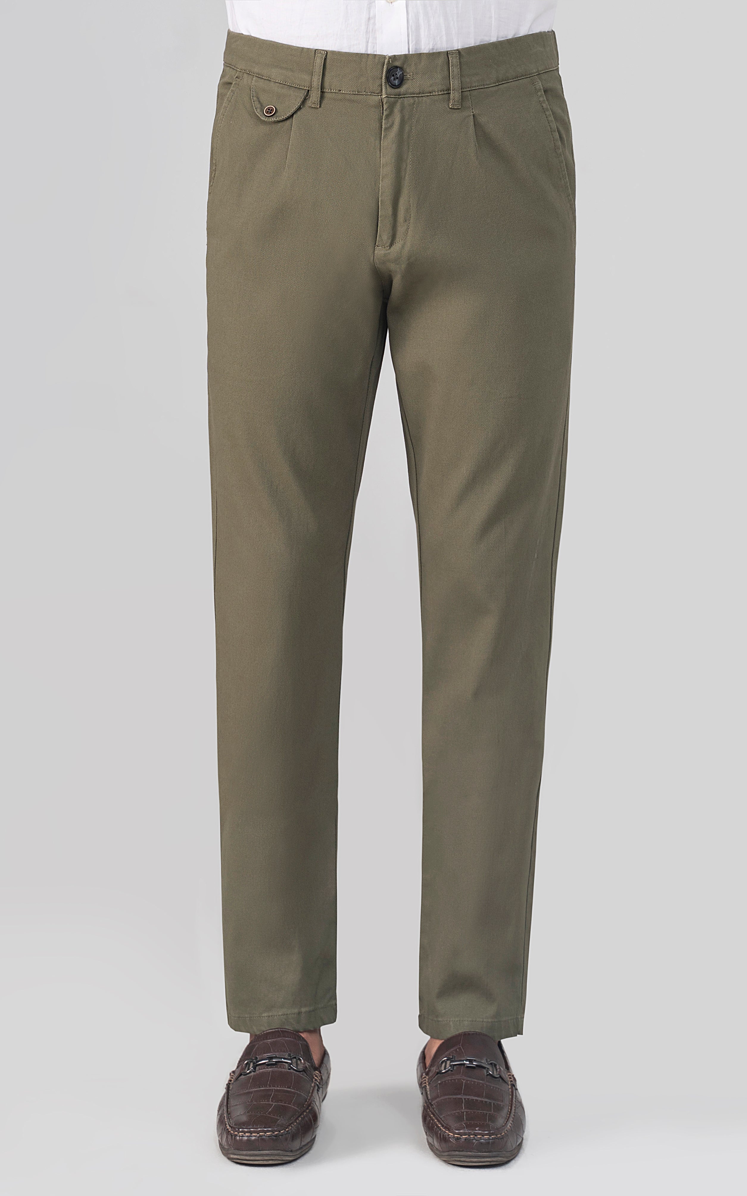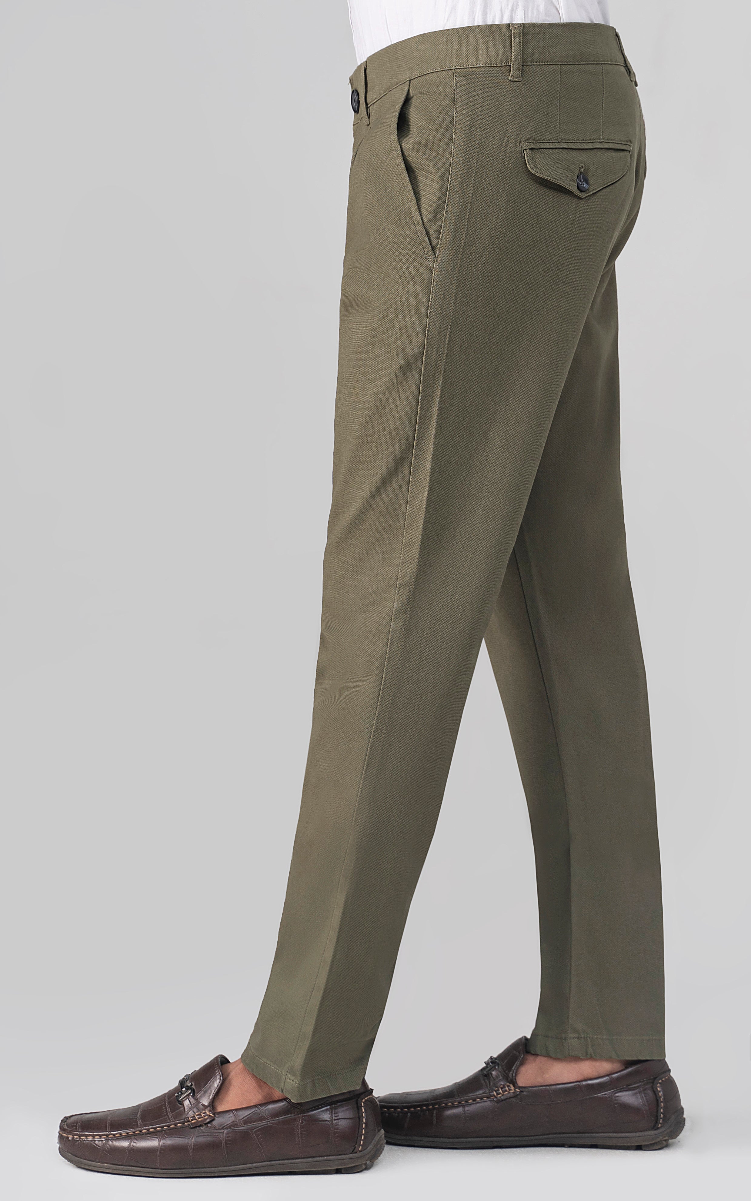 DOBBY SMART FIT CASUAL PANT OLIVE