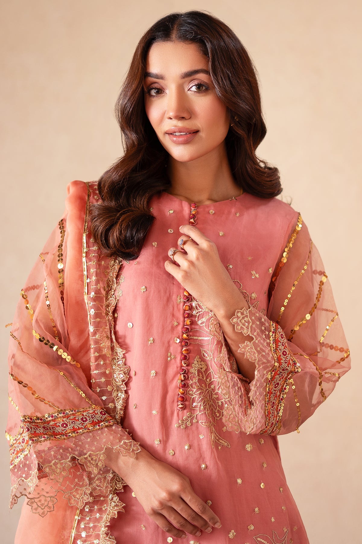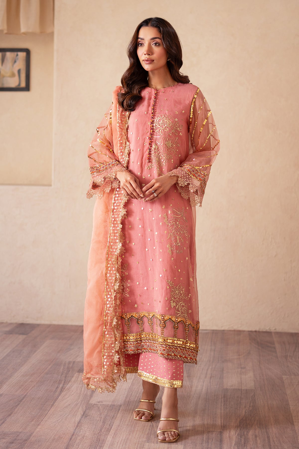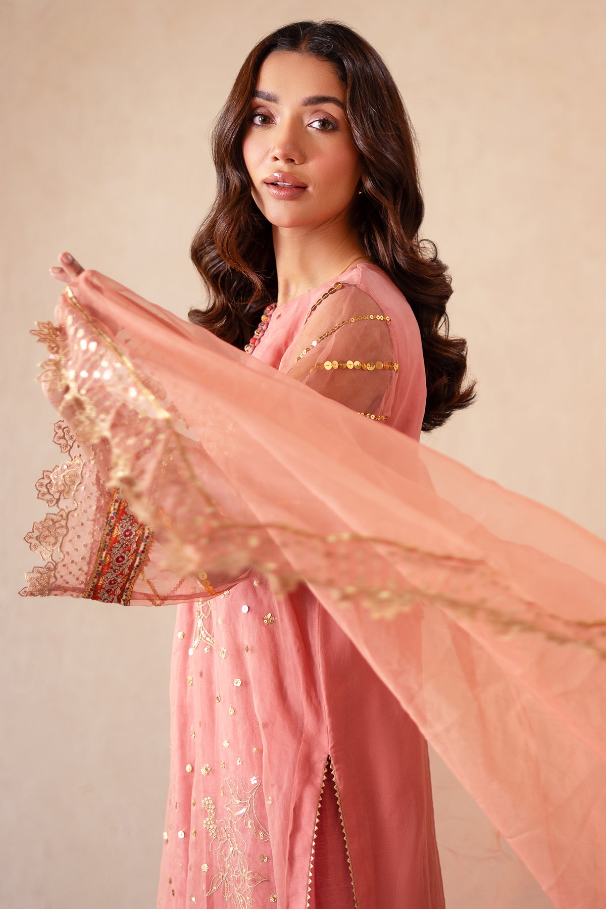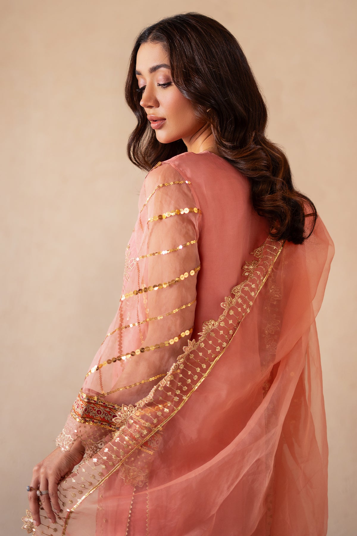 shirt : organza shirt with embroidered front and embroidered sleeves. embellished with patch work and adda work.raw silk inner shirt.finished with stitching detail. trouser : raw silk trouser with embroidered trouser lace.finished with stitching detail. dupatta : organza dupatta with embroidered 4 side dupatta pallu lace. measurement length (body length) 48" 50" 52" flare/daman width 28" 30" 30"