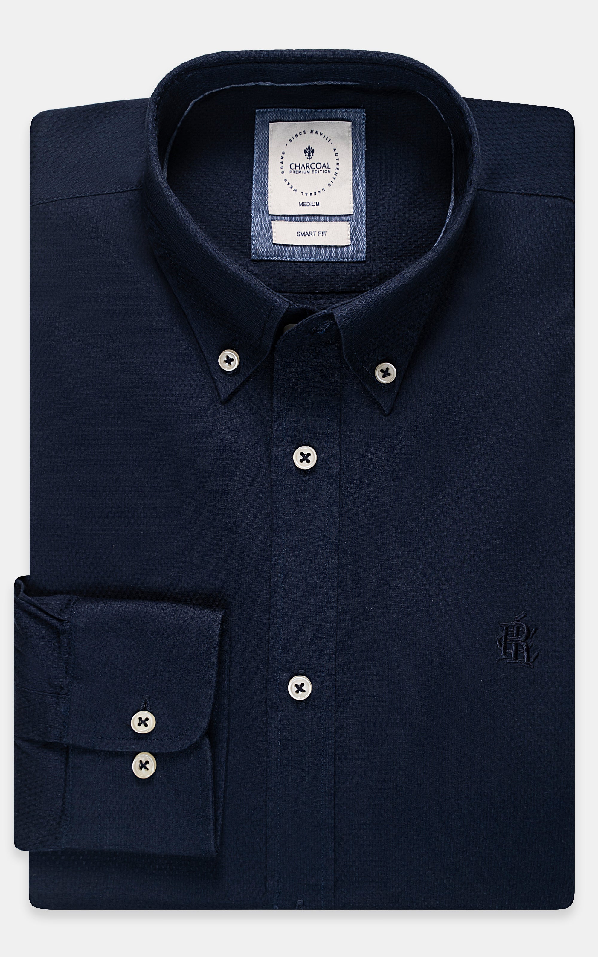 this shirt features a button-down collar for a classic touch, complemented by piping inside the ban for added detail. the front embroidery adds a personalized touch and visual interest. with round cuffs and full sleeves, it offers a timeless silhouette. a box pleat at the back enhances comfort and mobility. crafted from a cotton-rich self-textured fabric, it combines style with comfort. plus, being machine washable ensures easy care and maintenance, making it a practical choice for any wardrobe.