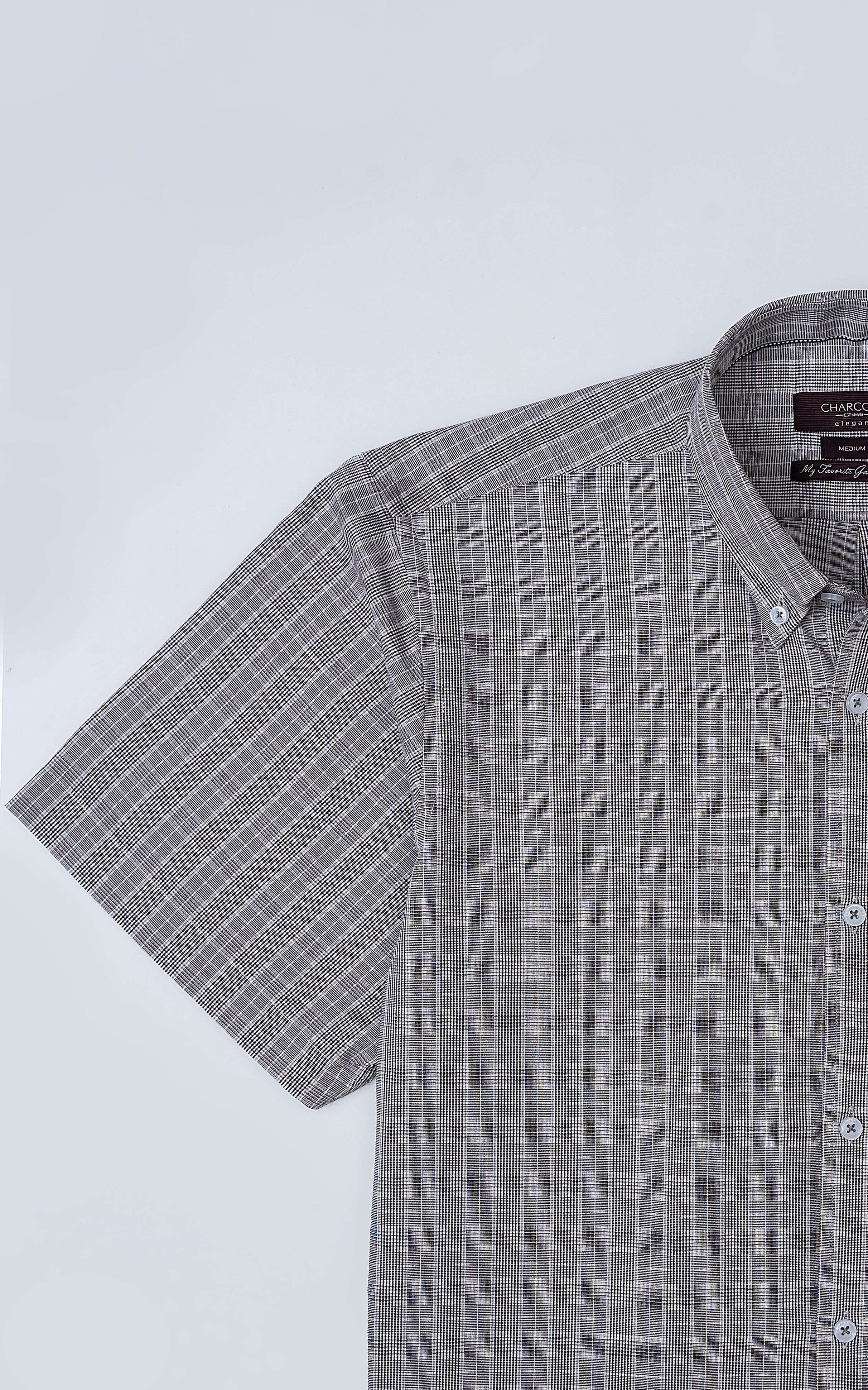 introducing our classic button down collar shirt, designed for style in the summers. crafted from a premium cotton-rich check fabric, this shirt offers both durability and sophistication. with a practical box pleat at the back and twill tape inside the ban, it ensures optimal fit and ease of movement. featuring buttoned fastening for convenience, this shirt is perfect for any occasion. the half sleeves add a touch of breathability, while its machine washable design ensures effortless care. elevate your wardrobe with this essential piece that effortlessly combines style and practicality.