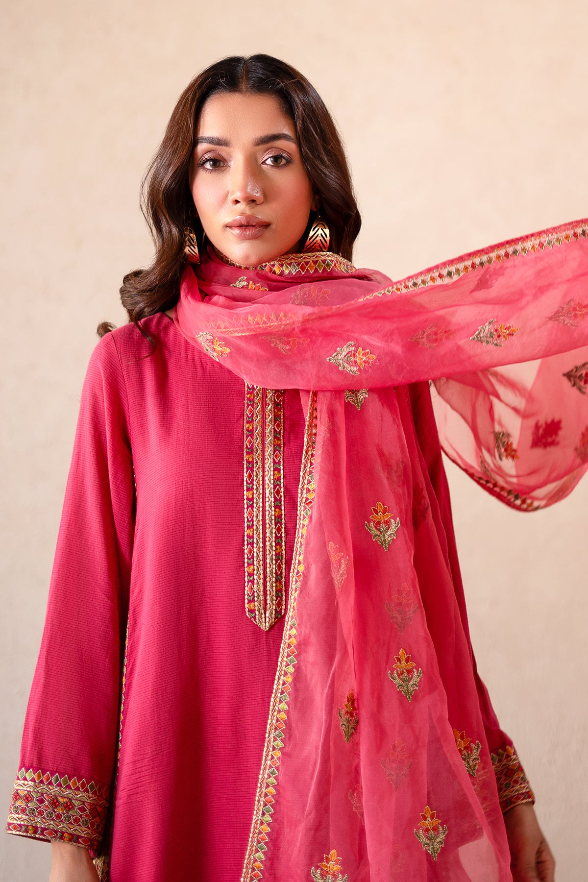 shirt : cotton net shirt with embroidered front neck lace and embroidered front back daman chok lace. raw silk inner shirt. finished with stitching detail. trouser : raw silk trouser with embroidered trouser lace. finished with stitching detail. dupatta : organza embroidered dupatta with 4 side dupatta pallu lace. size : s m l measurement length (body length) 42" 44" 46" flare/daman width 27" 29" 29"
