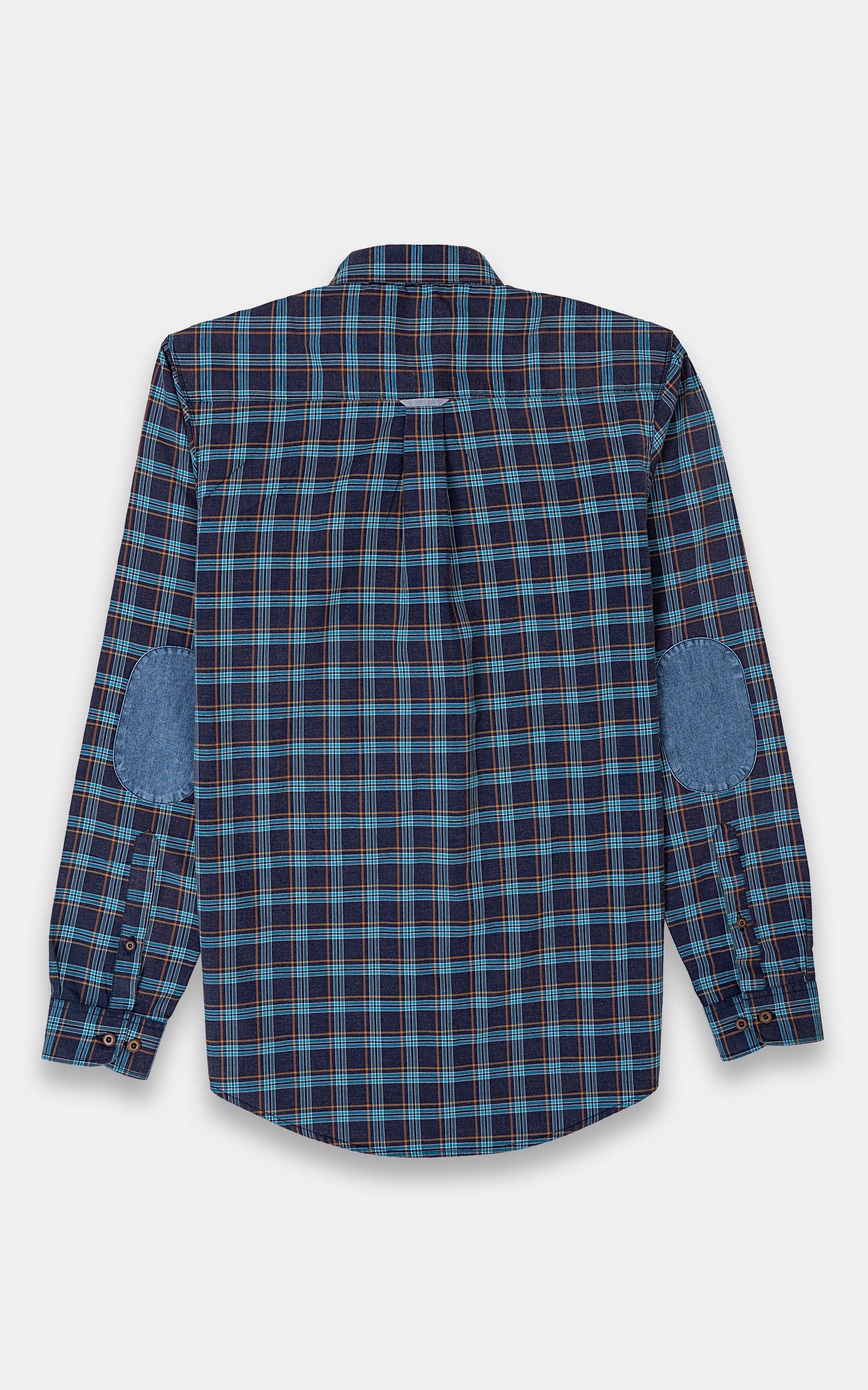 introducing our refined hidden button down collar casual shirt, featuring subtle details like the twill tape detail inside the ban and piping along the edge of the button placket. complete with a front bone adorned with a contrast loop and eye-catching contrast elbow patch. designed for comfort, it includes a box pleat at the back and a contrasting back loop. crafted from premium cotton-rich check fabric, this shirt offers buttoned fastening, full sleeves, and easy maintenance with its machine washable design. elevate your wardrobe with this versatile staple.