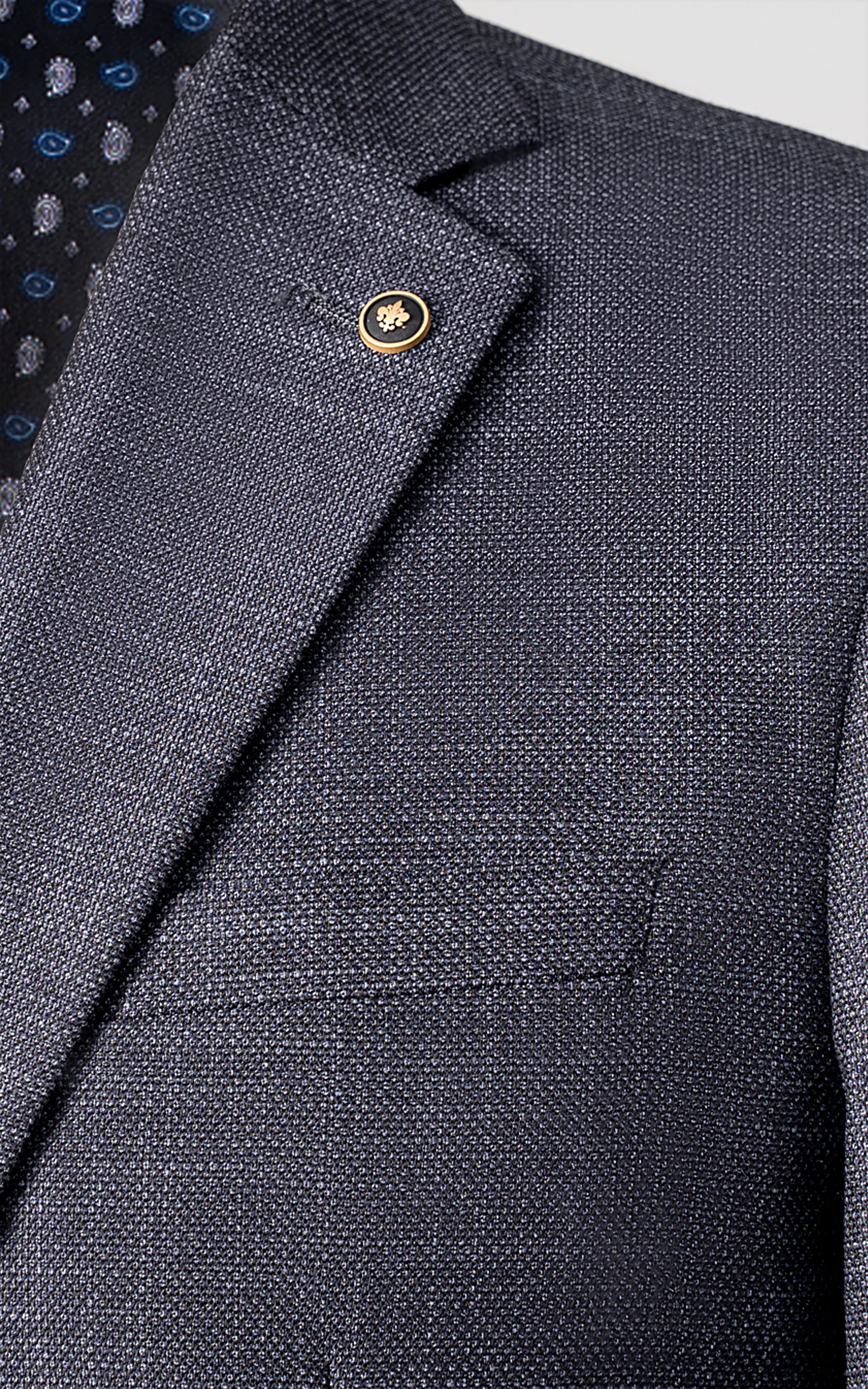 step out in style with this expertly crafted men’s coat. featuring a modern notch lapel and a tailored fit, it offers double vents for comfortable movement and a sleek, streamlined back. the two-button closure at the front lends a timeless appeal, while two front flap pockets and a welt pocket on the chest provide practical yet elegant detailing. subtle four-button accents on the sleeves and distinctive elbow patches add a contemporary touch.