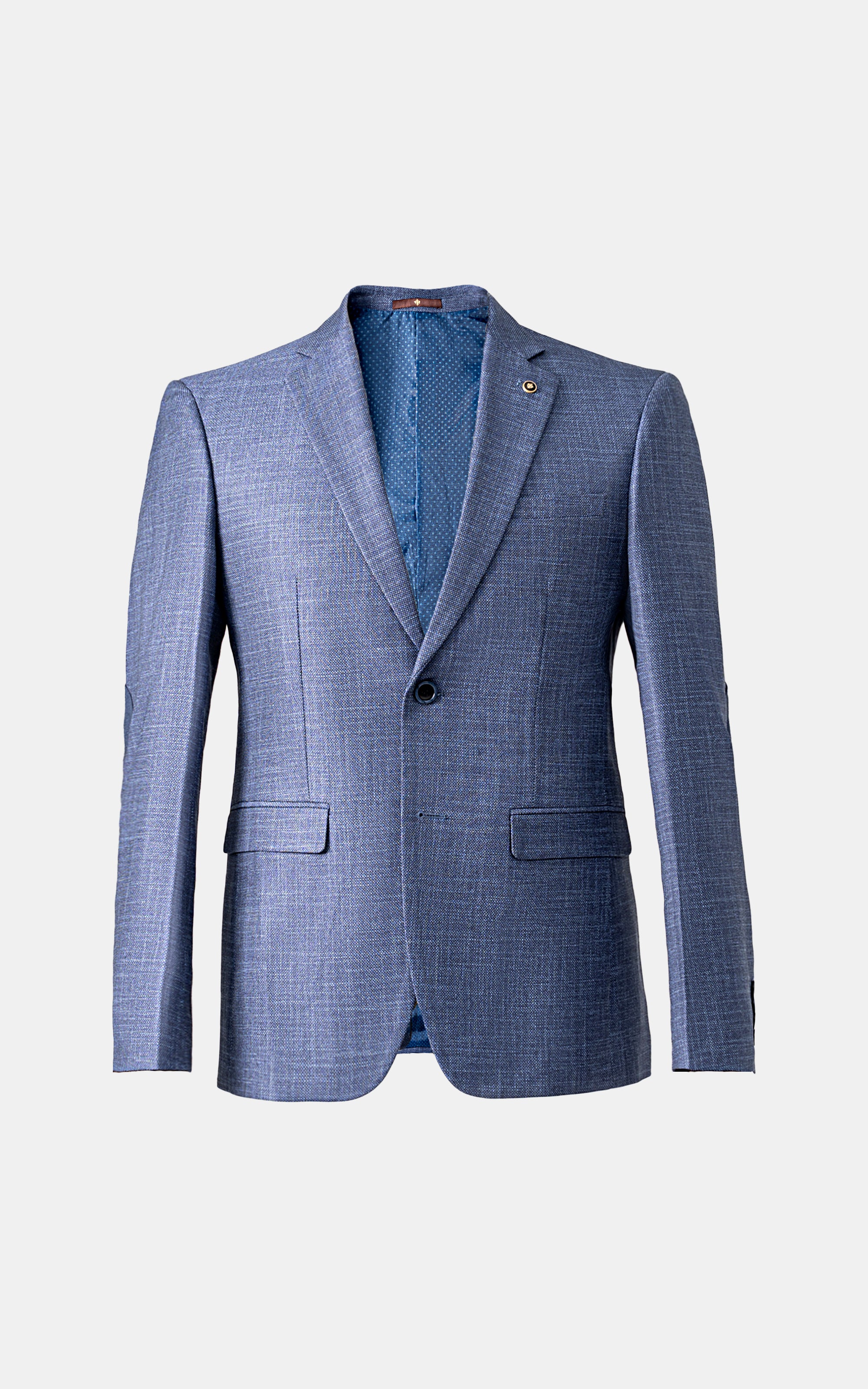 step out in style with this expertly crafted men’s coat. featuring a modern notch lapel and a tailored fit, it offers double vents for comfortable movement and a sleek, streamlined back. the two-button closure at the front lends a timeless appeal, while two front flap pockets and a welt pocket on the chest provide practical yet elegant detailing. subtle four-button accents on the sleeves and distinctive elbow patches add a contemporary touch.