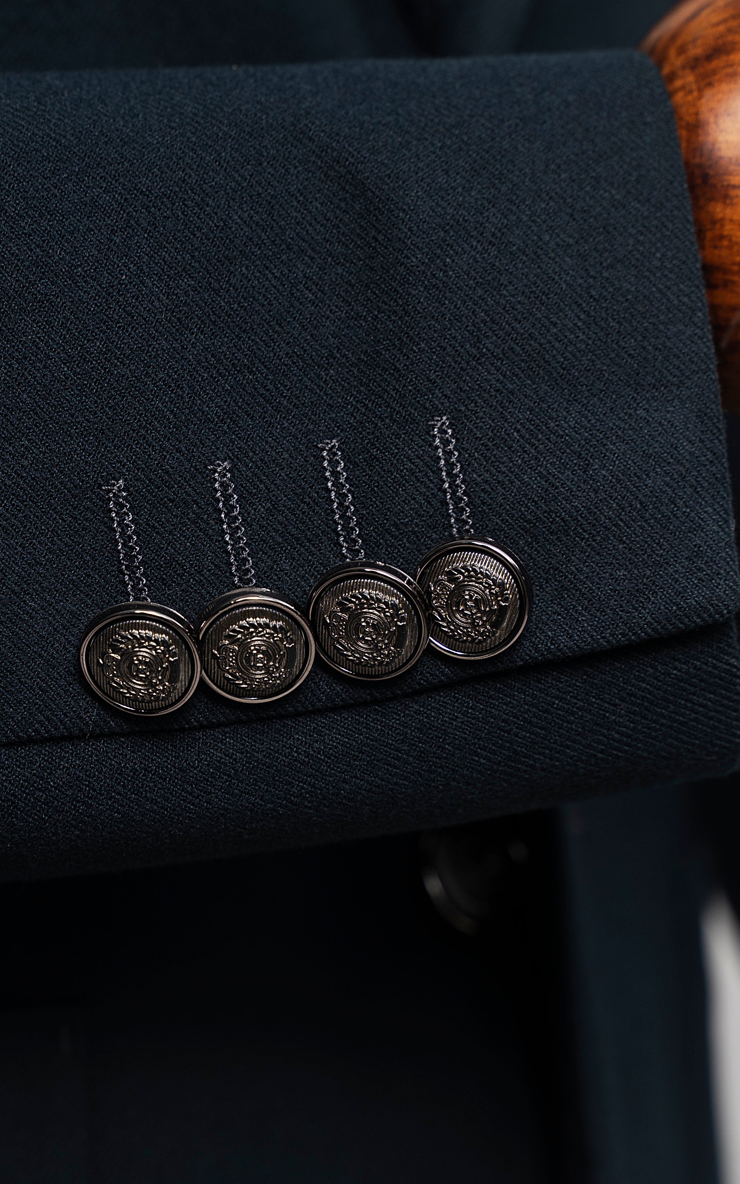 crafted for the modern gentleman, this premium men's coat is designed with meticulous attention to detail and superior craftsmanship. made from a luxurious poly-viscose blended fabric, it offers a perfect balance of durability, warmth, and style. the coat features a sleek double-vent front for ease of movement and enhanced comfort. its sophisticated design is accented with four premium signature charcoal buttons on the sleeves. the inner silk lining boasts a refined printed pattern, ensuring comfort and a polished finish. functional and stylish, the coat includes front patch pockets and a single chest pocket, making it a versatile addition to any wardrobe.