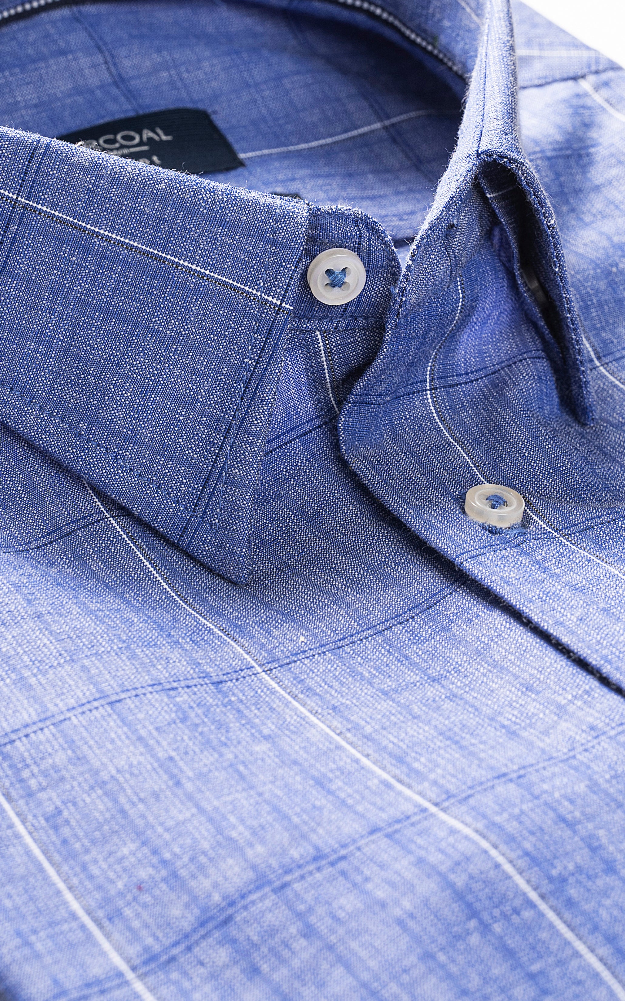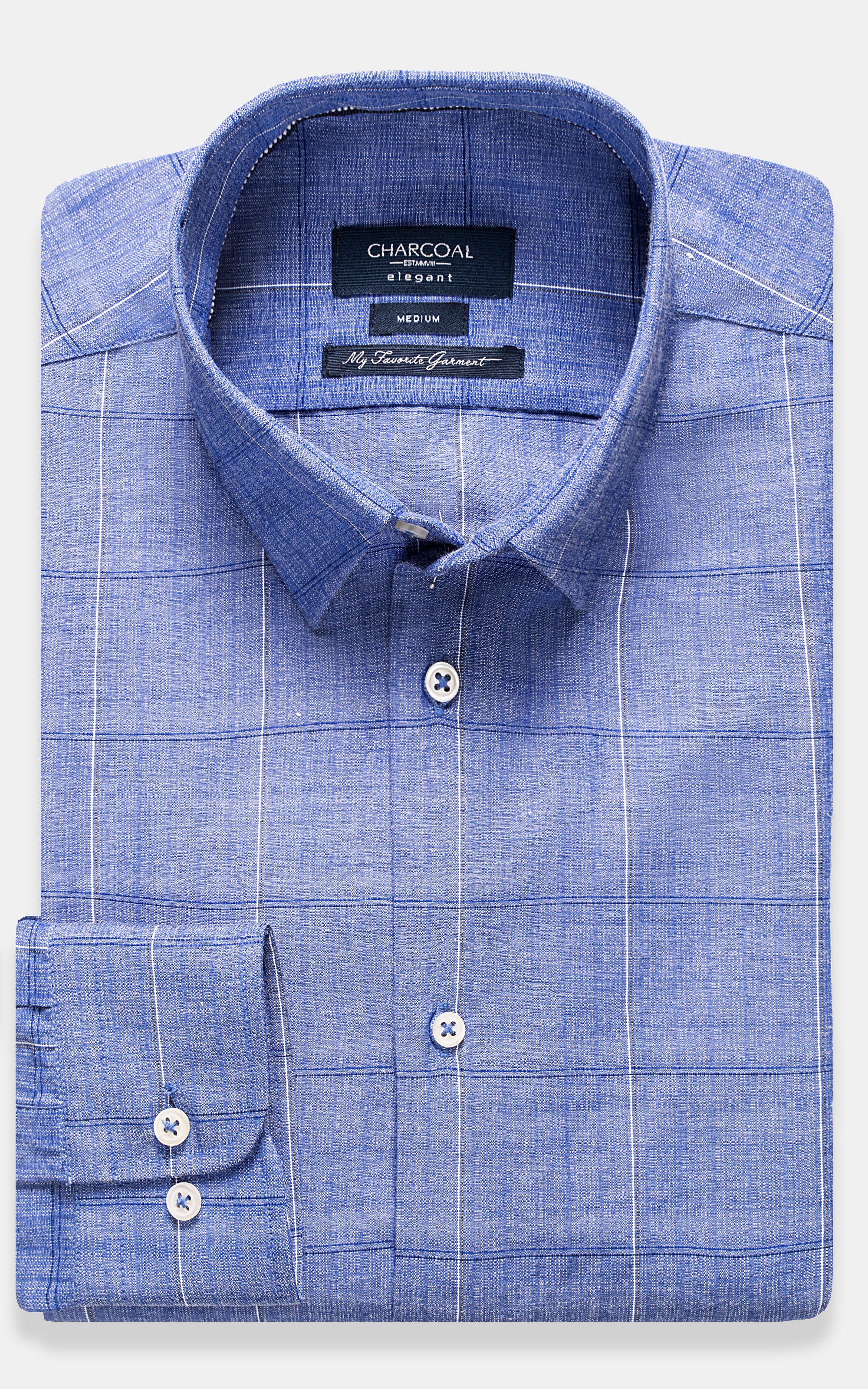 semi-formal shirt is crafted from a high-quality cotton-rich check fabric.it features a hidden button-down collar for a streamlined look, enhanced by twill tape detailing inside the ban. the button placket is accented with subtle piping along the edge. with full sleeves and round cuffs, this shirt is versatile enough for both work and social settings. machine washable for easy care.