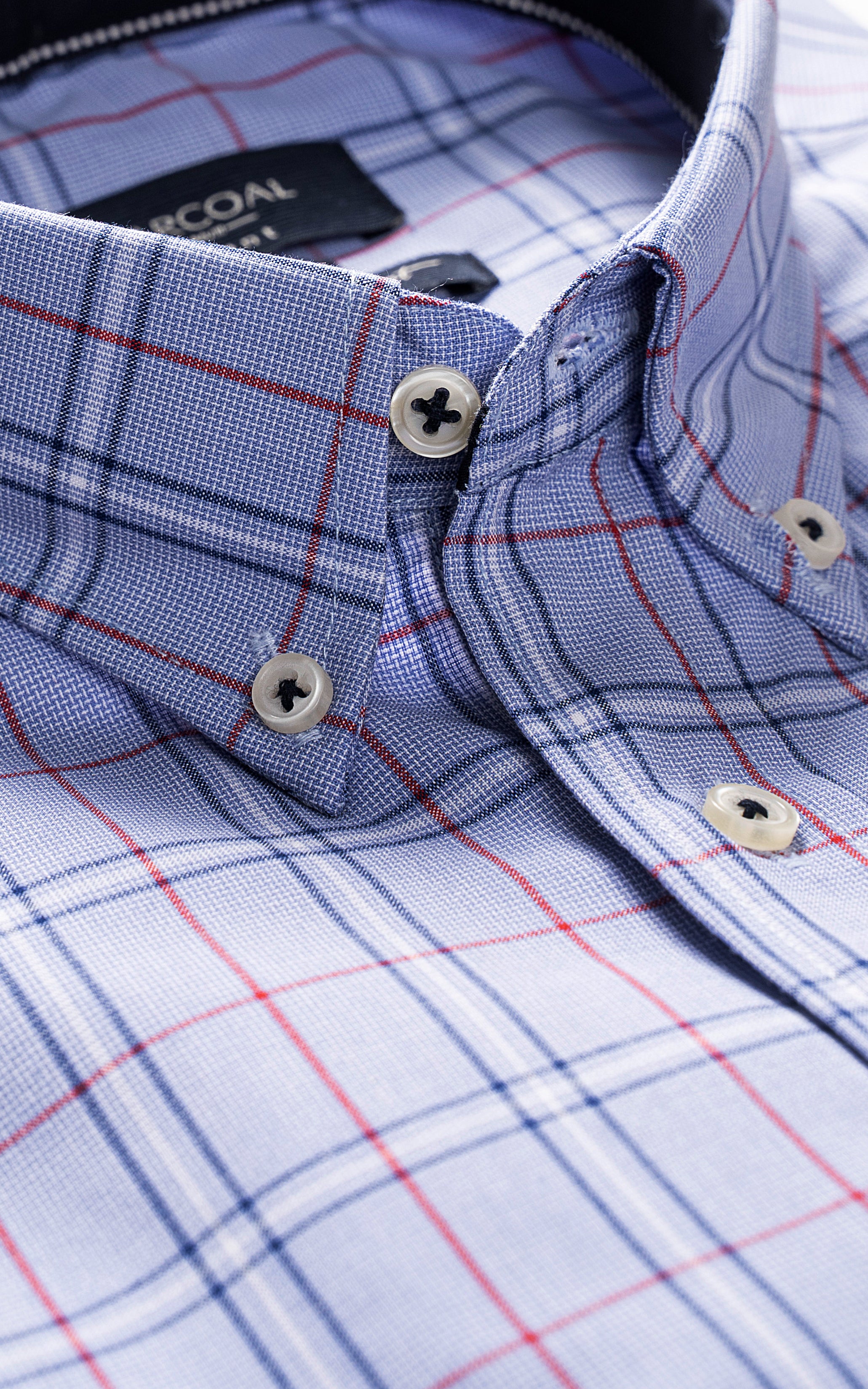 this semi-formal shirt, expertly crafted from a cotton-rich check fabric for a refined look and comfortable feel. it features a classic button-down collar and full sleeves. this shirt is designed with a half contrast and twill tape inside the ban. piping along the edge of the button placket. finished with round cuffs for a modern touch, this shirt is machine washable for easy care, ensuring it remains a staple in your collection for years to come.