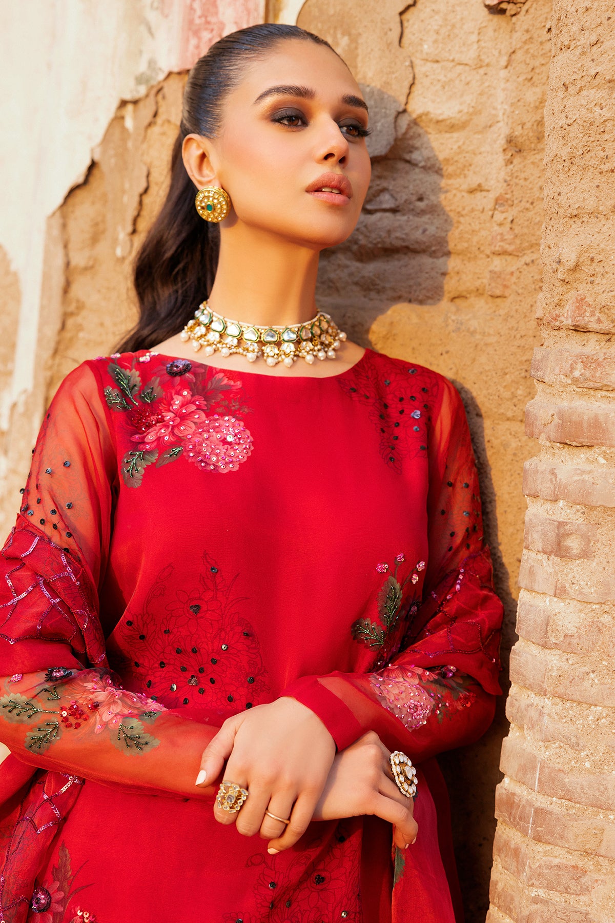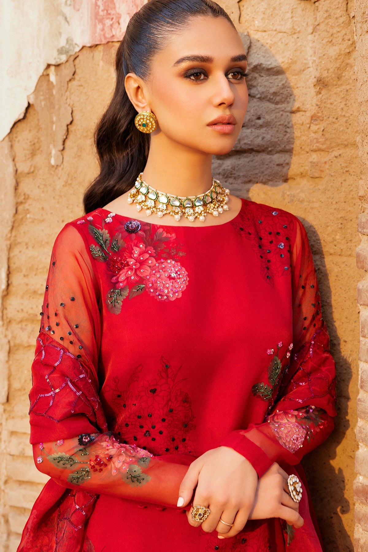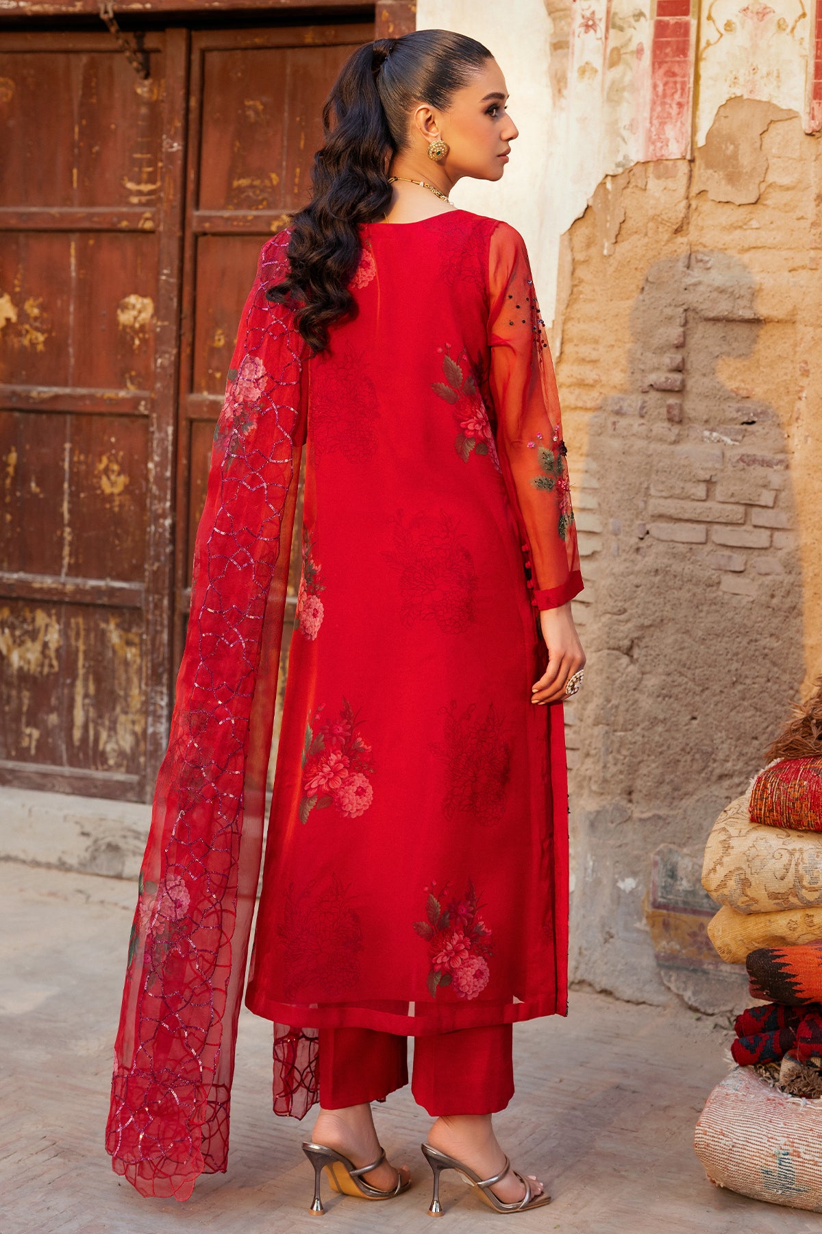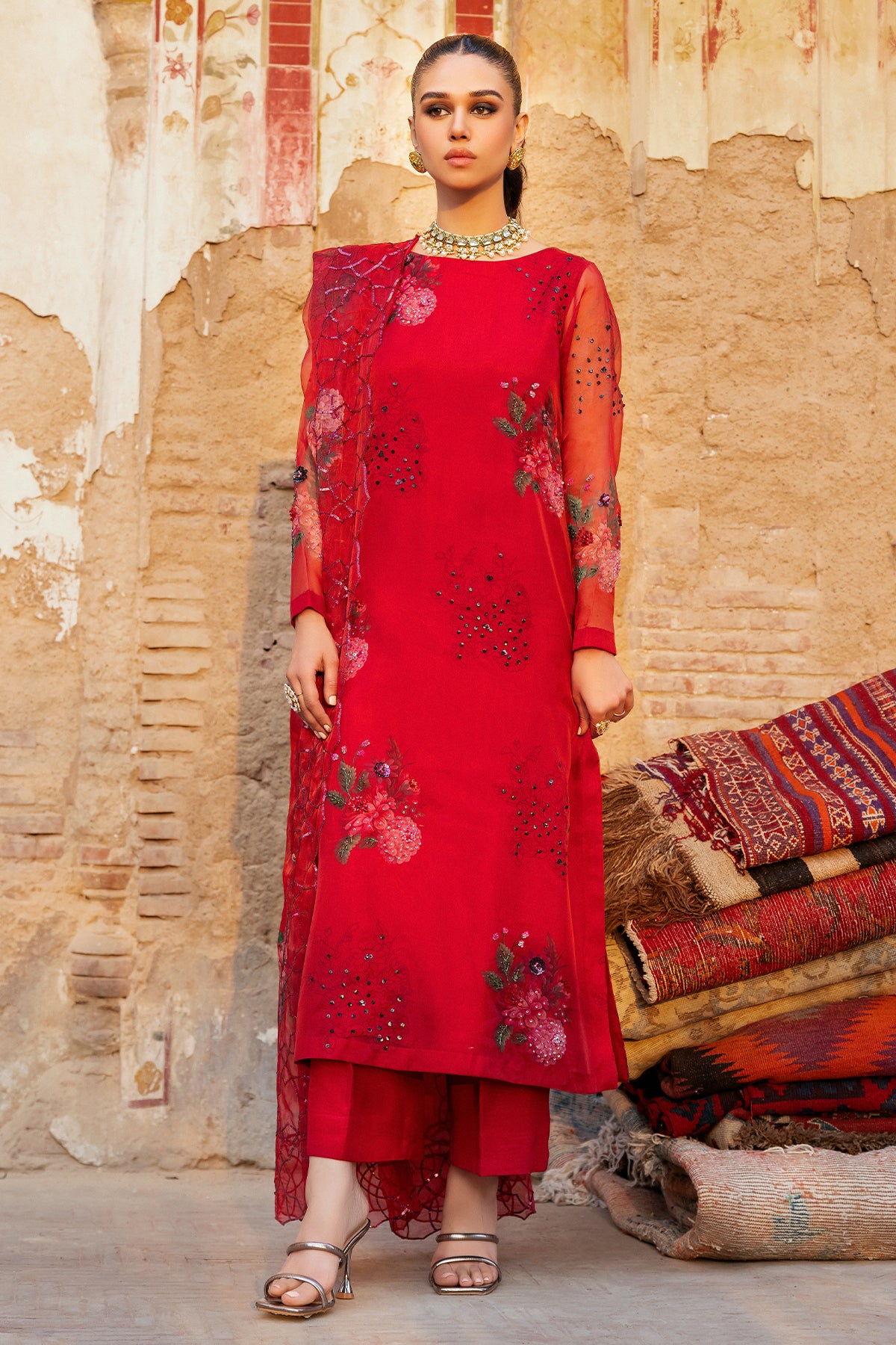 shirt : organza printed shirt. raw silk inner shirt. finished with stitching detail. trouser : raw silk trouser. finished with stitching detail. dupatta : organza printed embroidered dupatta with 4 side dupatta pallu lace. size : s m l measurement length (body length) 47" 49" 51" flare/daman width 28" 30" 30