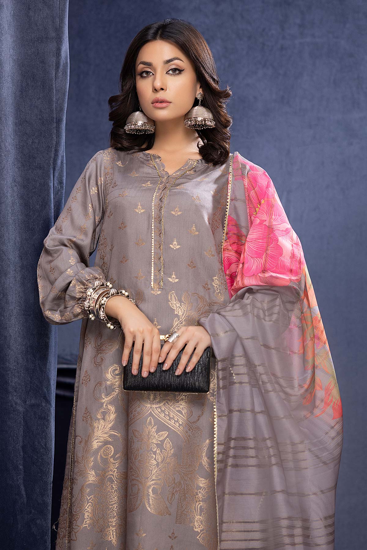 - broshia jequared shirt - front back and sleeves finished with laces and stitching details - digital printed zaari organza dupatta finished with laces and stitching details - linen straight trouser finished with lace and stitching details body length xs 40",s 40",m 41", l 41"