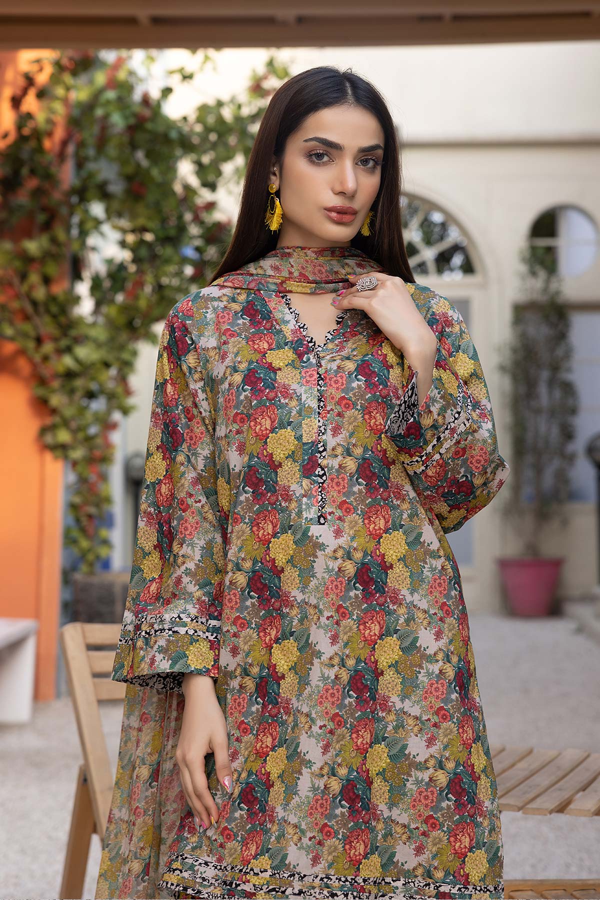 - digital lawn multi green floral printed shirt - finished with fashion of black & white printed fabric on sleeves and daman - printed floral lawn tulip trouser - floral printed bamber chiffon dupatta finished with printed fabric measurement length 38" 38" 40" 40" flare/ daman width 26" 26" 28" 28"