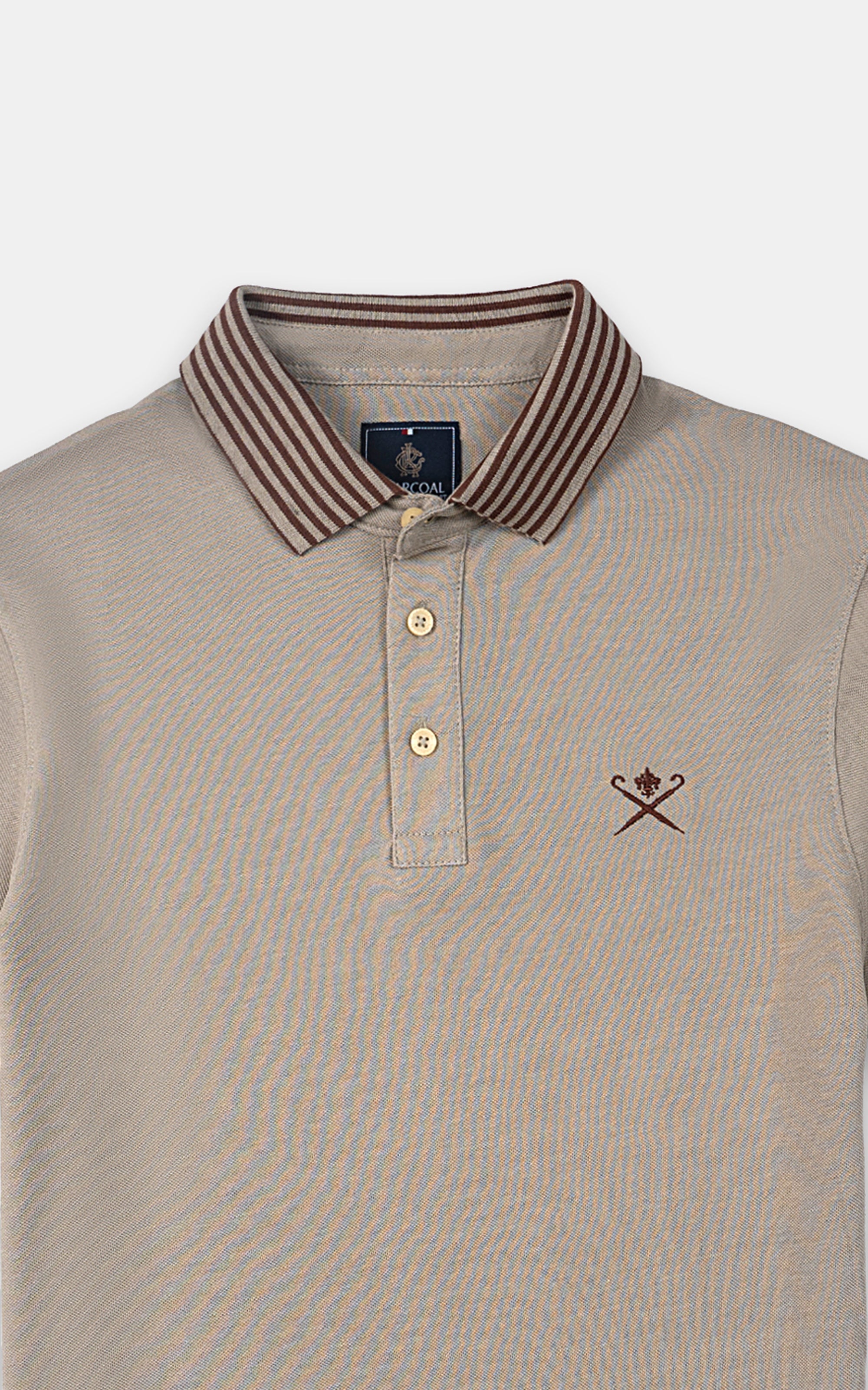 indulge in timeless sophistication with our classic polo, featuring a distinguished jacquard collar, refined front embroidery, and elegant tipping cuffs. crafted from luxurious pique melange fabric, this smart fit polo offers both style and comfort, complete with convenient side vents and easy machine washability.