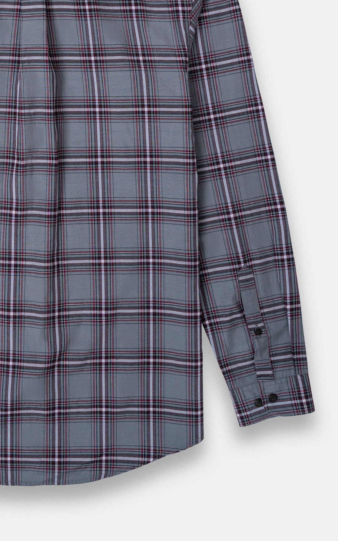 introducing our versatile regular collar casual shirt, designed for modern sophistication. stand out with contrast detailing on the button placket and a distinctive label patch. the round cuffs with inner contrast along with the box pleat at the back ensures optimal comfort, while being stylish. crafted from a premium cotton-rich check fabric, this shirt features is buttoned fastening and full sleeves, and has a machine washable design.
