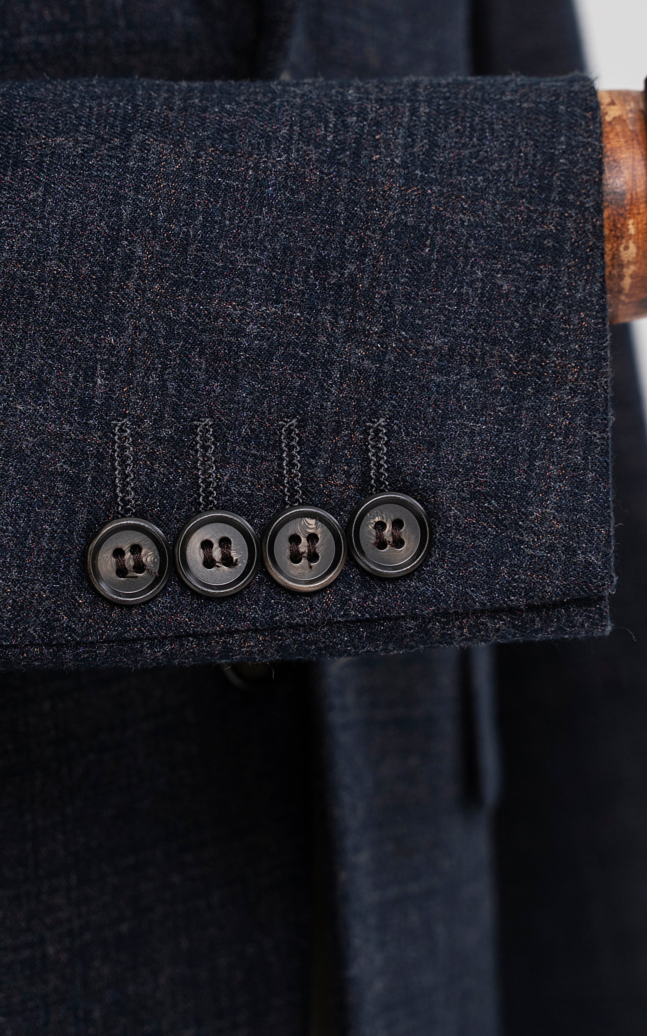 this coat is a refined, classic design that combines elements of formal tailoring with practical features. it features a peak lapel, providing an elegant and bold look. the flap pockets offer a traditional and neat appearance, adding both functionality and style by providing secure storage while maintaining a polished silhouette. the two buttons and single-breasted construction create a streamlined front, adding to the coat’s tailored and sophisticated feel. the inclusion of two side vents at the back ensures freedom of movement and comfort, making the coat more wearable while maintaining its structured shape. made from poly-viscose fabric, this material blend provides a smooth, soft texture, making the coat both durable and comfortable. this combination of features makes for a stylish, versatile jacket perfect for a variety of occasions, offering a balance of formality and practicality.