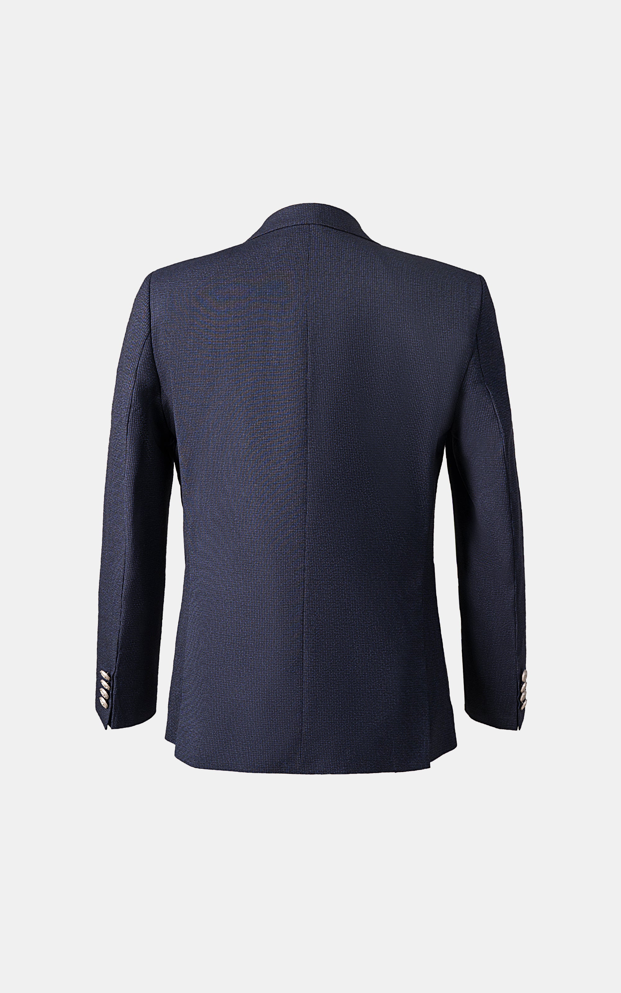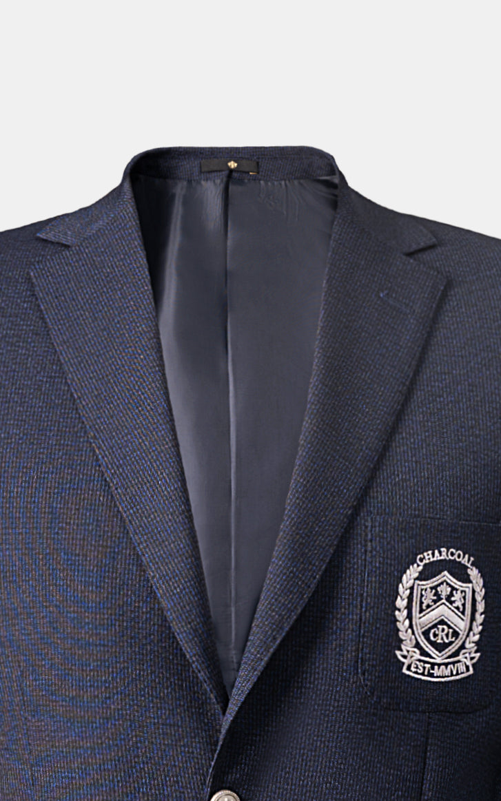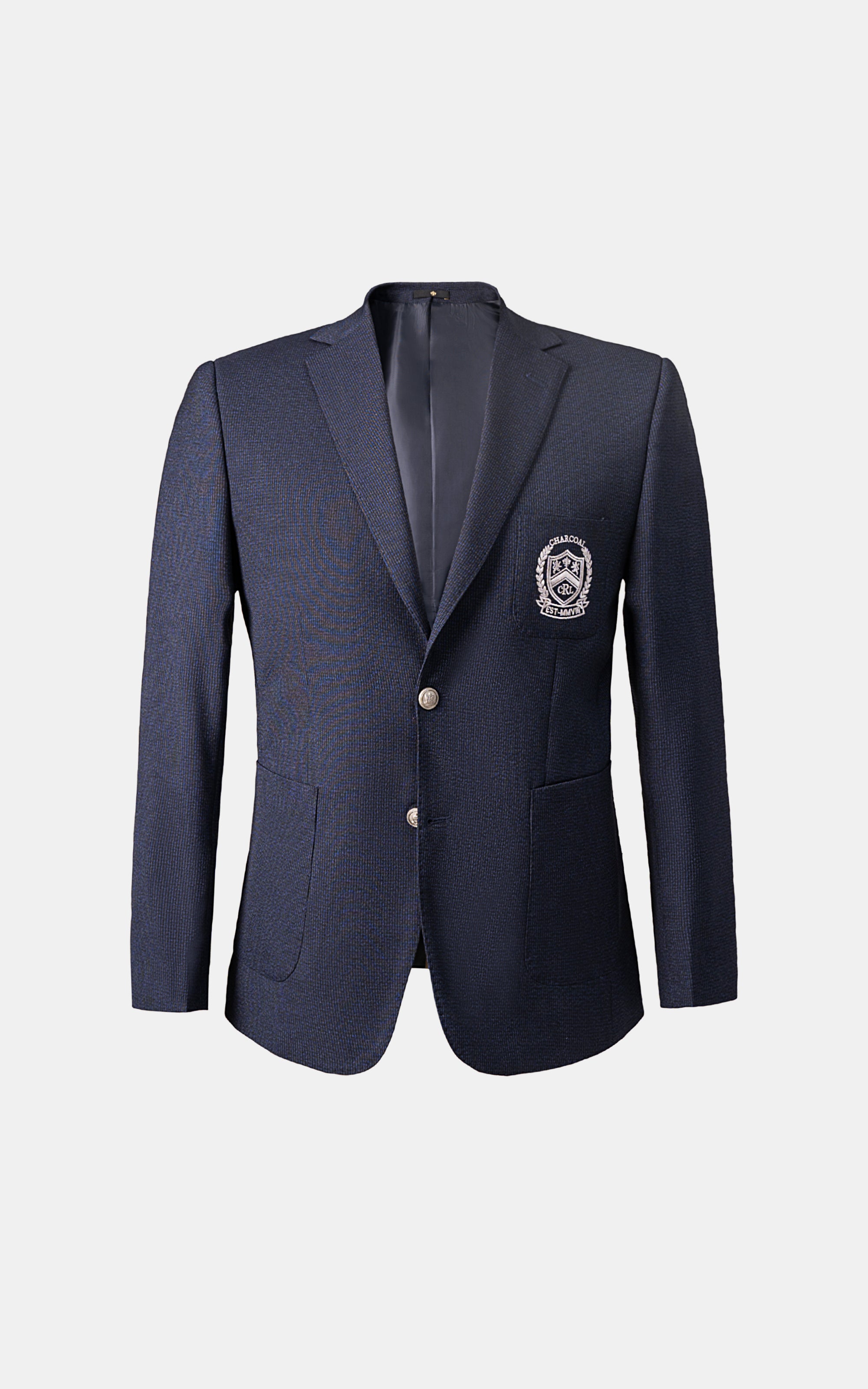 elevate your wardrobe with our slim fit casual coat crafted from high-quality tropical fabric, this coat is perfect for year-round wear. it features a notch lapel, which adds a sharp, clean line to the collar, giving the coat a refined but approachable look. the patch pockets enhance the casual aesthetic, as these are sewn onto the outside of the garment, offering a laid-back style. the side vents would allow for better movement and comfort, making the coat practical while maintaining its smart appearance. additionally, the silver-grey embroidery adds an elegant touch, creating a sophisticated contrast to the overall design.