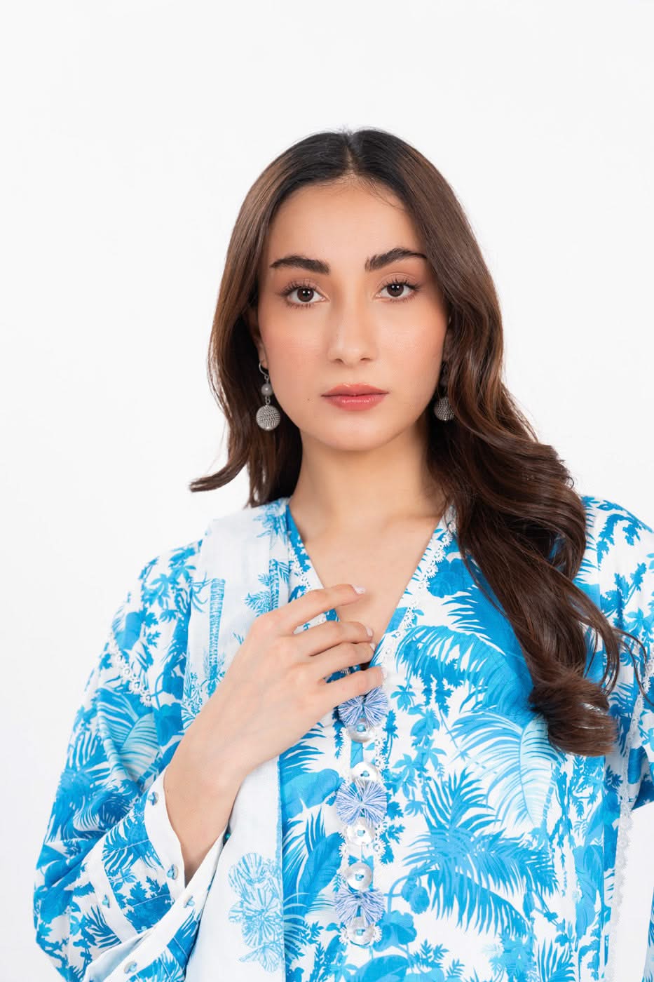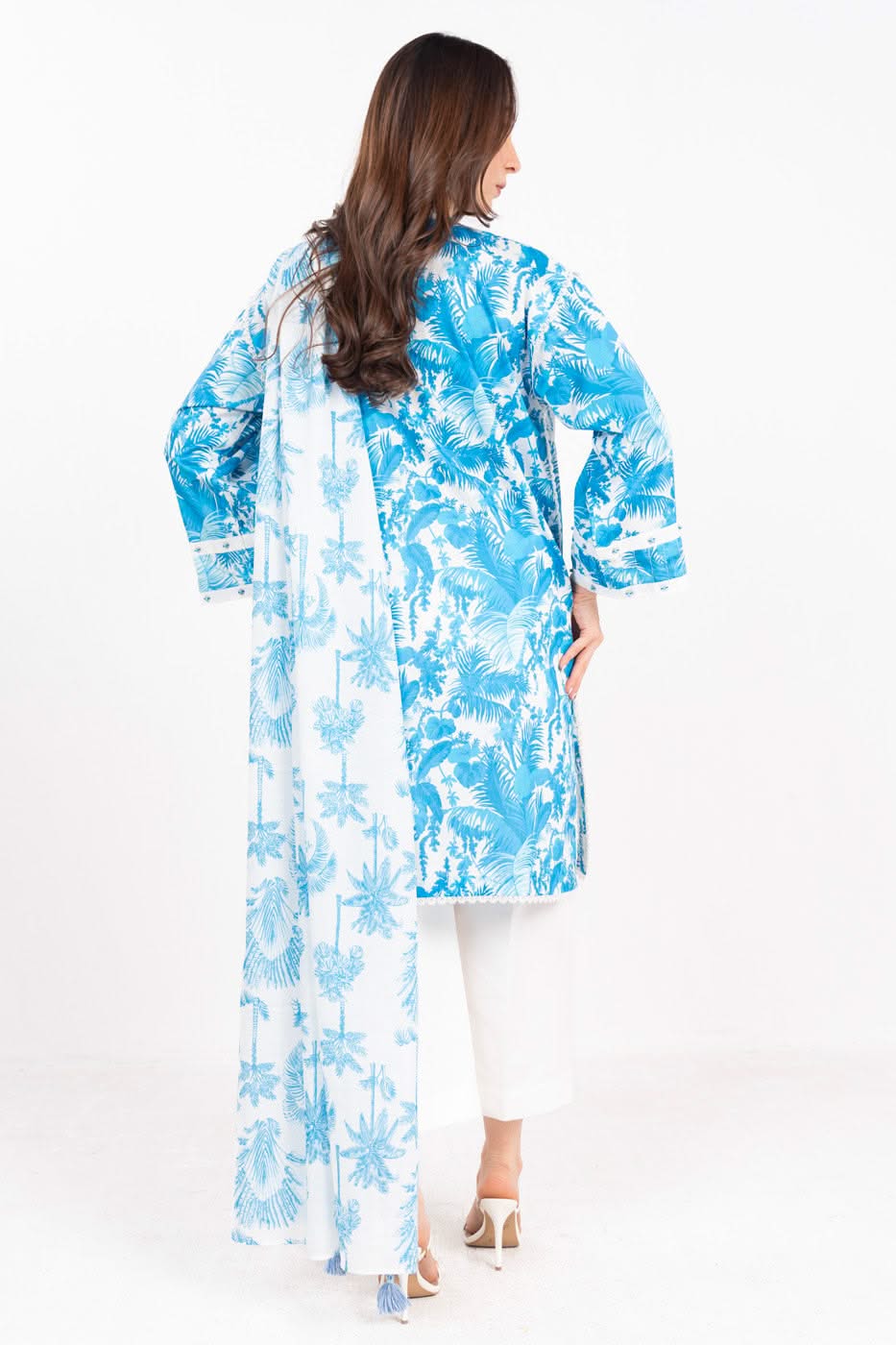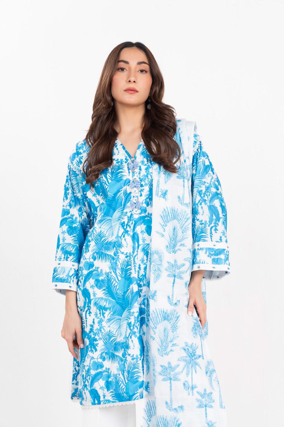 unstitched 3-piece printed lawn suit with lawn dupatta color: blue shirt:: printed lawn shirt 3 meters fabric: lawn dupatta:: printed lawn dupatta 2.5 meters fabric: lawn trouser: : dyed cambric trouser 2.5 meters fabric: cambric disclaimer: due to the difference in lighting used during photoshoots, the color or texture of the actual product may slightly vary from the image.