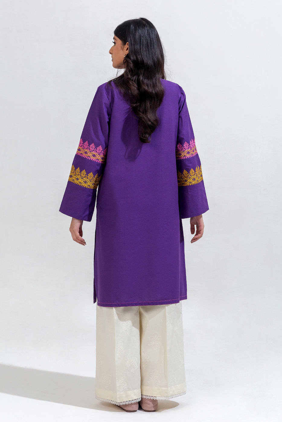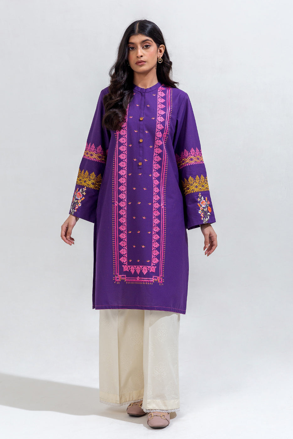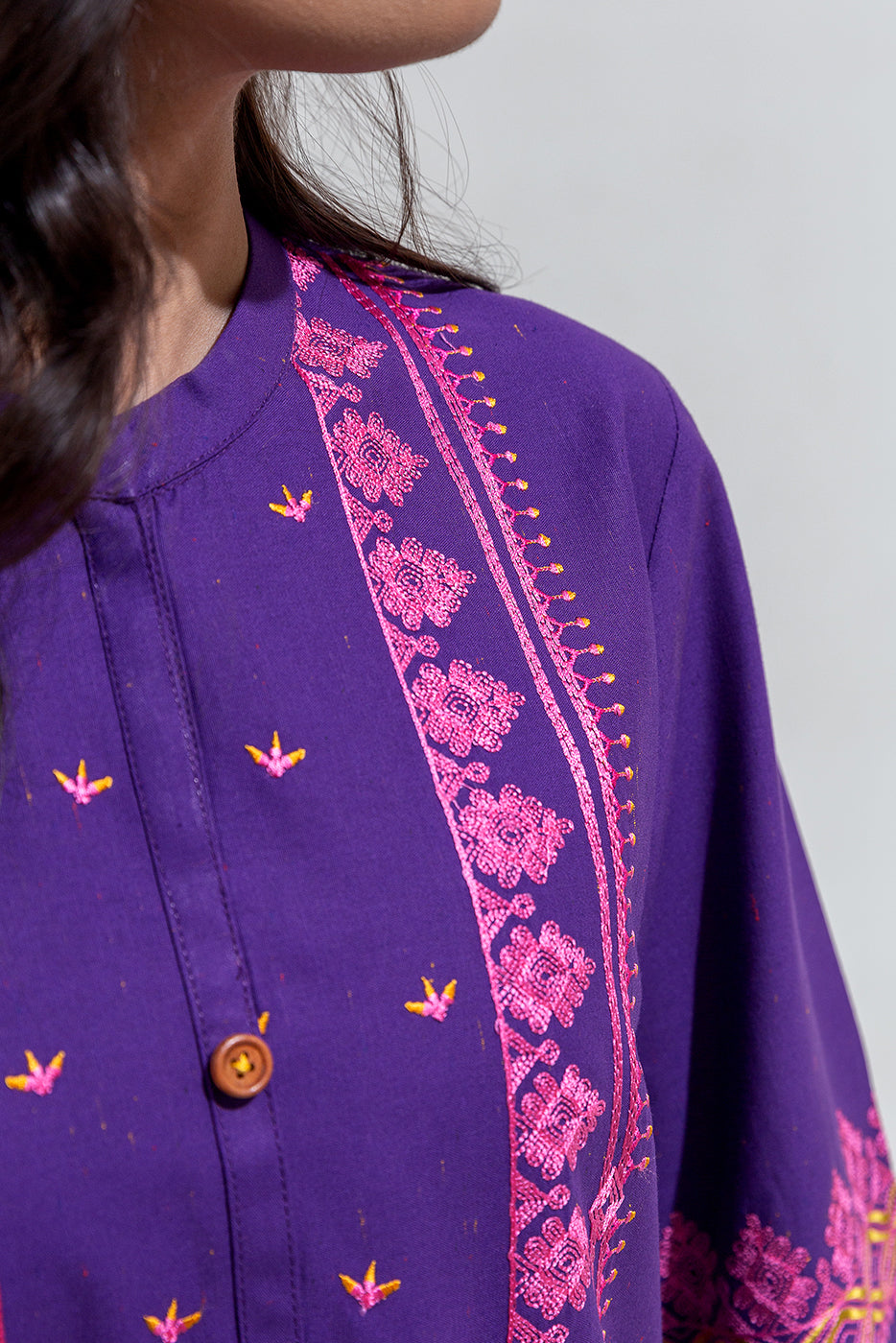description: embroidered shirt with neckline and placket with buttons.embroidered sleeves with cuff and slit.straight hem with top stitches. fabric: cambric what you'll get: shirt fit: casual fit size & fit: model height is 5'6" model is wearing 8 size