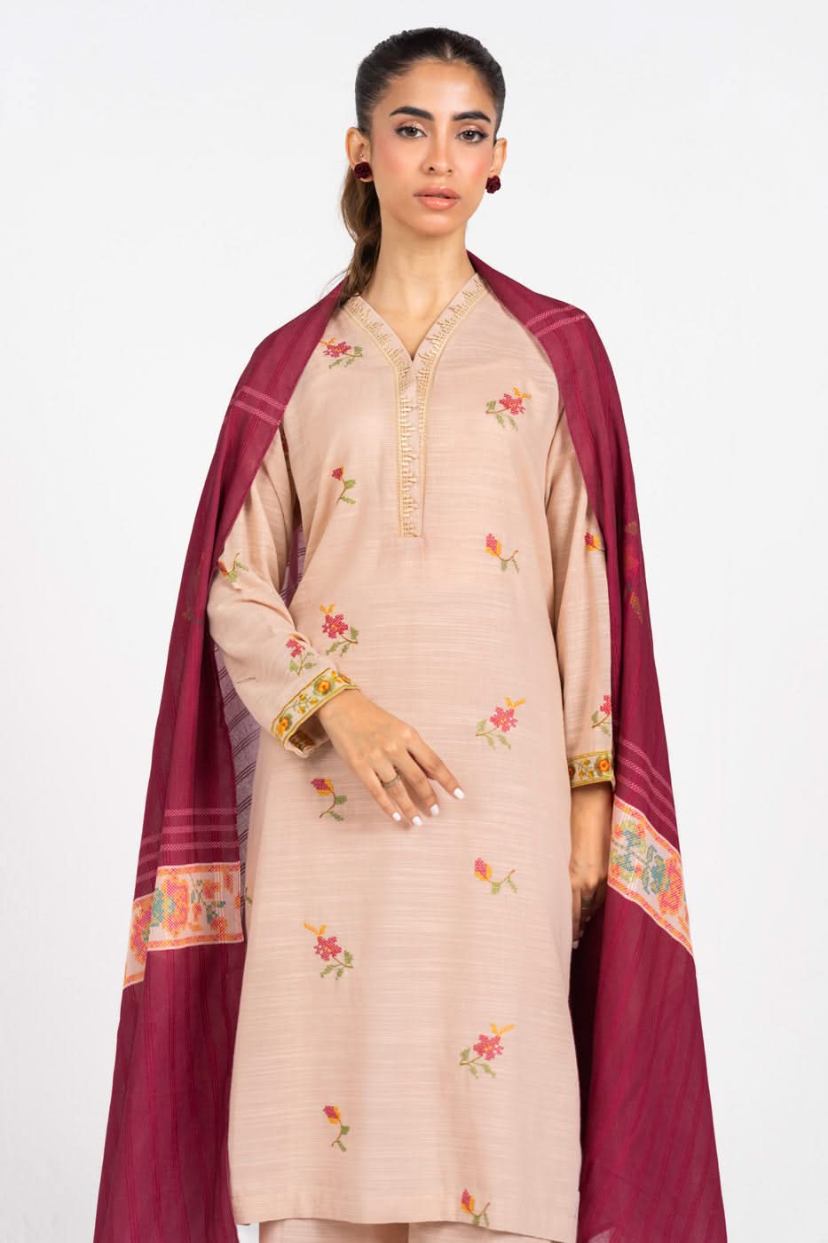 2 pc outfit - shirt & trouser fabric: khaddar design: embroidered fit: regular a perfect casual wear line where style meets comfort; be it running errands or staying at home, we have your everyday wardrobe sorted with our simple yet chic embroidered outfits. disclaimer: due to the difference in lighting used during photoshoots, the color or texture of the actual product may slightly vary from the image.