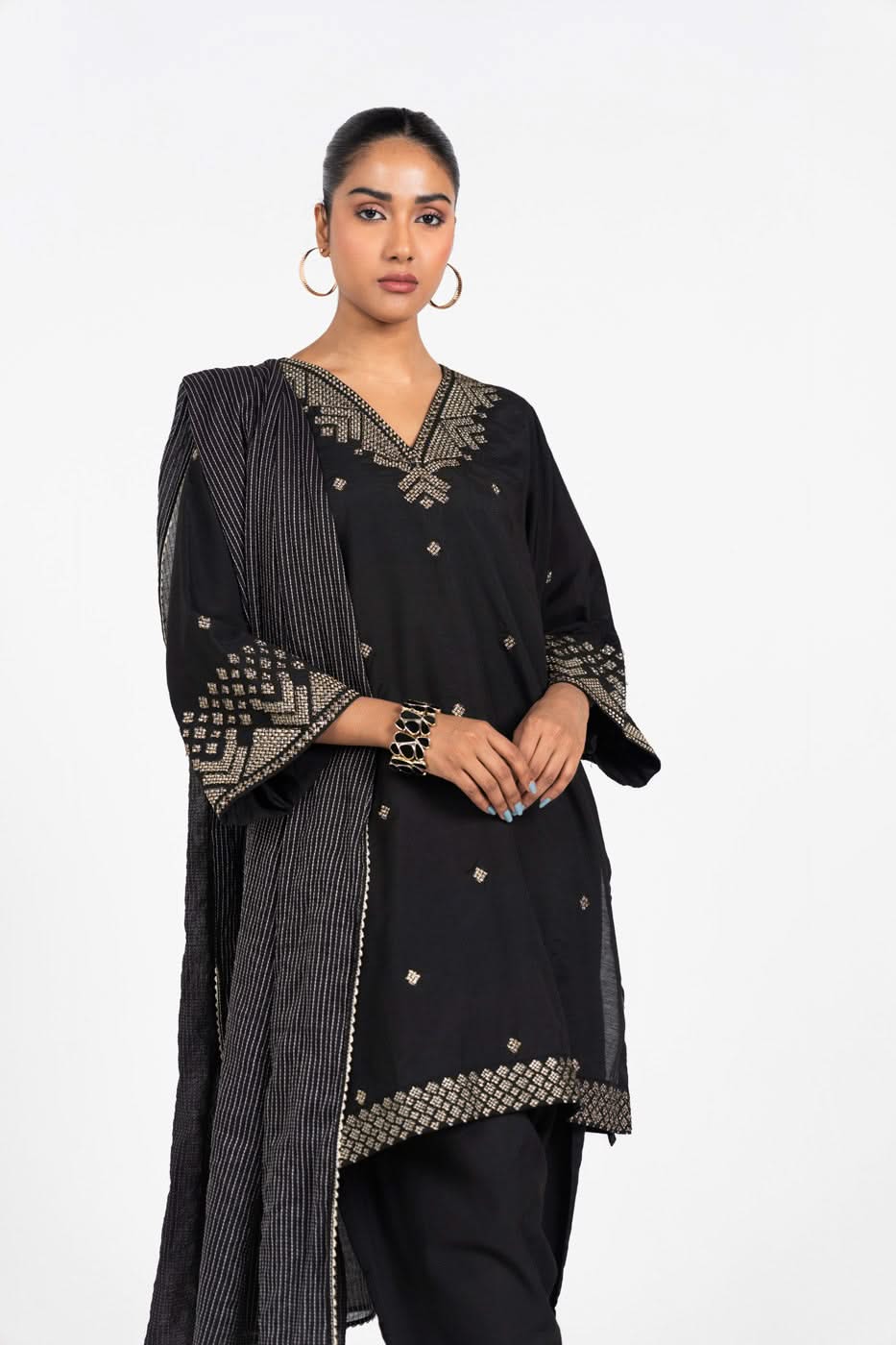 2 pc outfit - shirt & shalwar fabric: yarn dyed design: embroidered fit: regular a perfect casual wear line where style meets comfort; be it running errands or staying at home, we have your everyday wardrobe sorted with our simple yet chic embroidered outfits. disclaimer: due to the difference in lighting used during photoshoots, the color or texture of the actual product may slightly vary from the image.