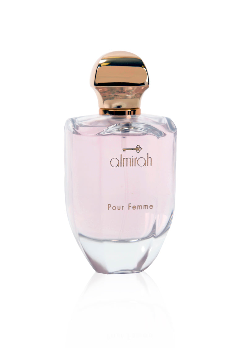 floral, fruity bitter orange, red currant, lemon, jasmine, rose, musk, vanilla, caramel presenting a floral and fruity composition with a gorgeous woody background- . holding on to the essence of almirah's values, the fragrance opens with accords of bitter orange, redcurrant, green tangerine, lemon, and grapefruit. sambac jasmine and rose along with accords of wild strawberry, peach and apple form the heart of this timeless creation. the olfactory harmony settles at the base of golden wood, cedar, cashmere, musk, vanilla, and caramel.
