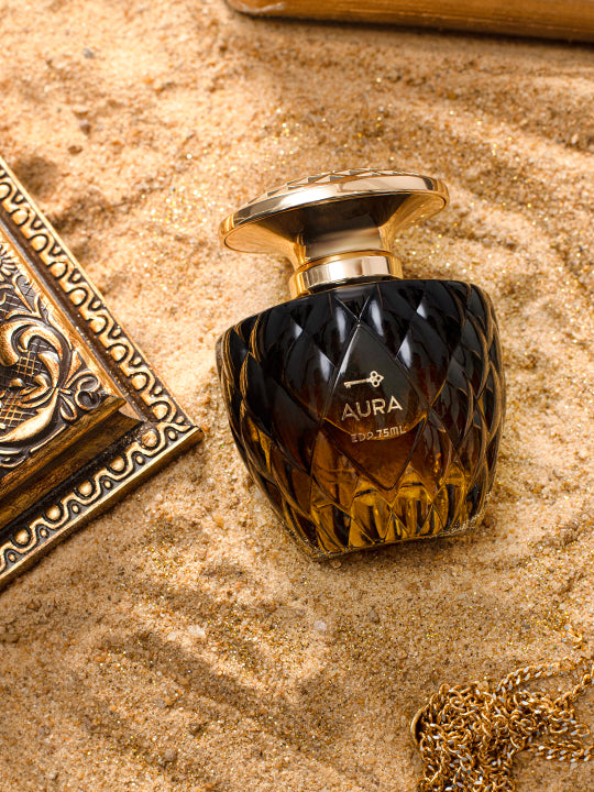 sleek & sensual raspberry, rose caramel, musk, vanilla top notes: raspberry, orange oil, banana, coconut heart notes: caramel, rose, muguet, violet leaf, jasmine base notes: ambrox, sandalwood, cedar wood, vetiver, musk, tonka bean, vanilla , a charismatic fragrance for women that reveals a sleek and sensual persona. unveil the allure with top notes of raspberry, orange oil, banana, and coconut. the heart blooms with caramel, rose, muguet, violet leaf, and jasmine, while the base notes of ambrox, sandalwood, cedar-wood, vetiver, musk, tonka bean, and vanilla create a captivating and unforgettable olfactory experience. let aura be the essence that defines your distinctive and alluring presence.
