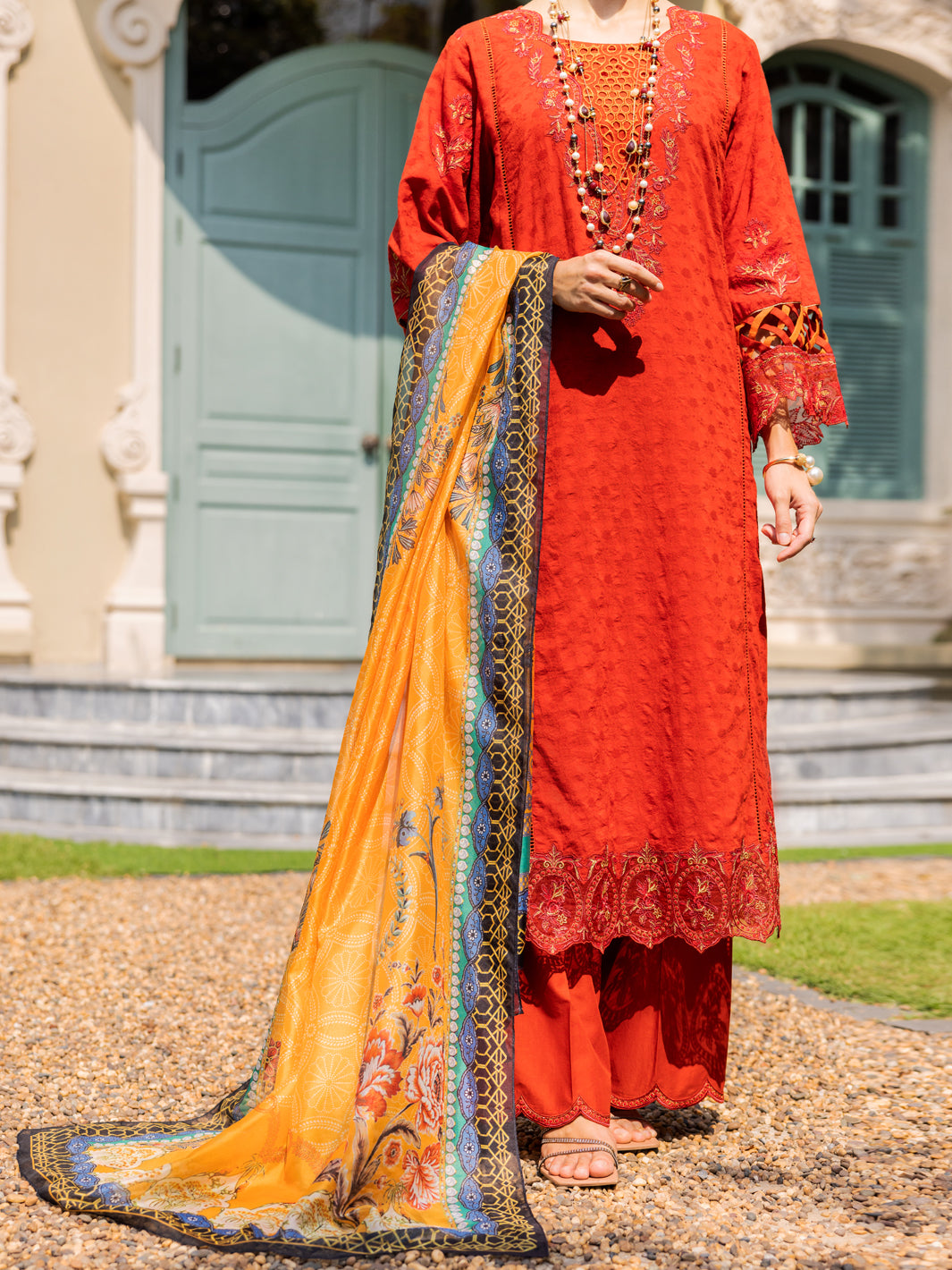 self-jacquard shirt with sleeves & kali embroidery: 2.5 meters lawn dyed trouser: 2 meters tissue silk printed dupatta: 1 pc neckline embroidered bunch: 1 pc neckline embroidered jaal: 1 pc sleeves embroidered border: 1.05 meter daman embroidered border: 0.90 meter trouser & chalk embroidered patti: 2.5 meters